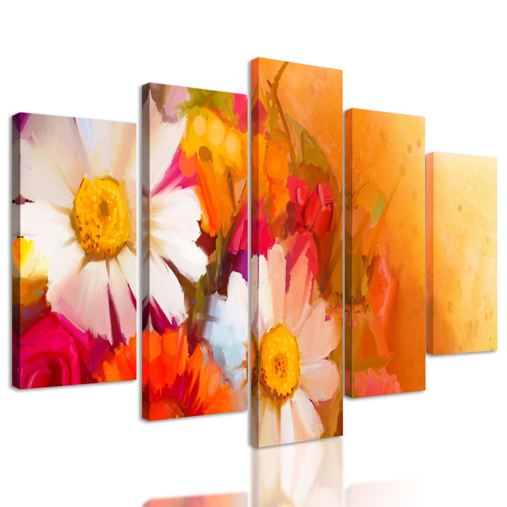 5-dielny obraz umelecká maľba pole plné nádherných kvetov