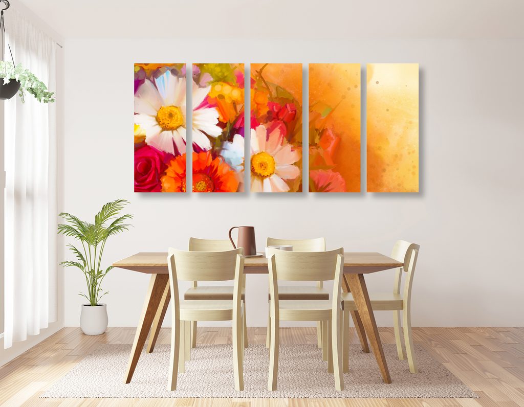 5-dielny obraz umelecká maľba pole plné nádherných kvetov