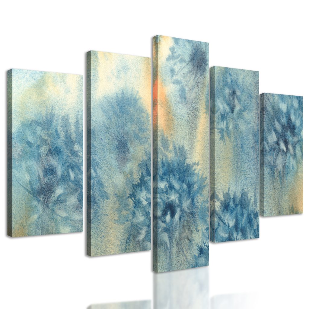 5-dielny obraz nádherná maľba zapádajúceho slnka za pole