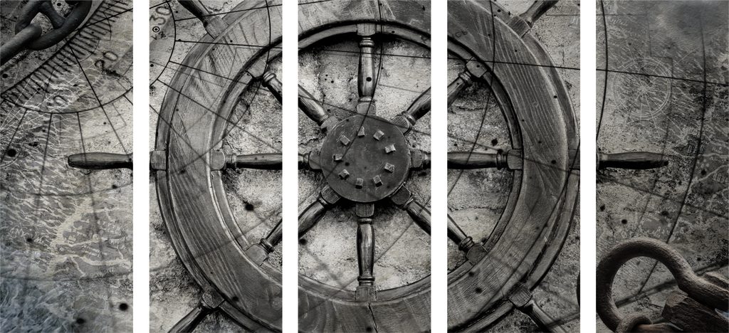 5-dielny obraz umelecké prevedenie lodného kormidla