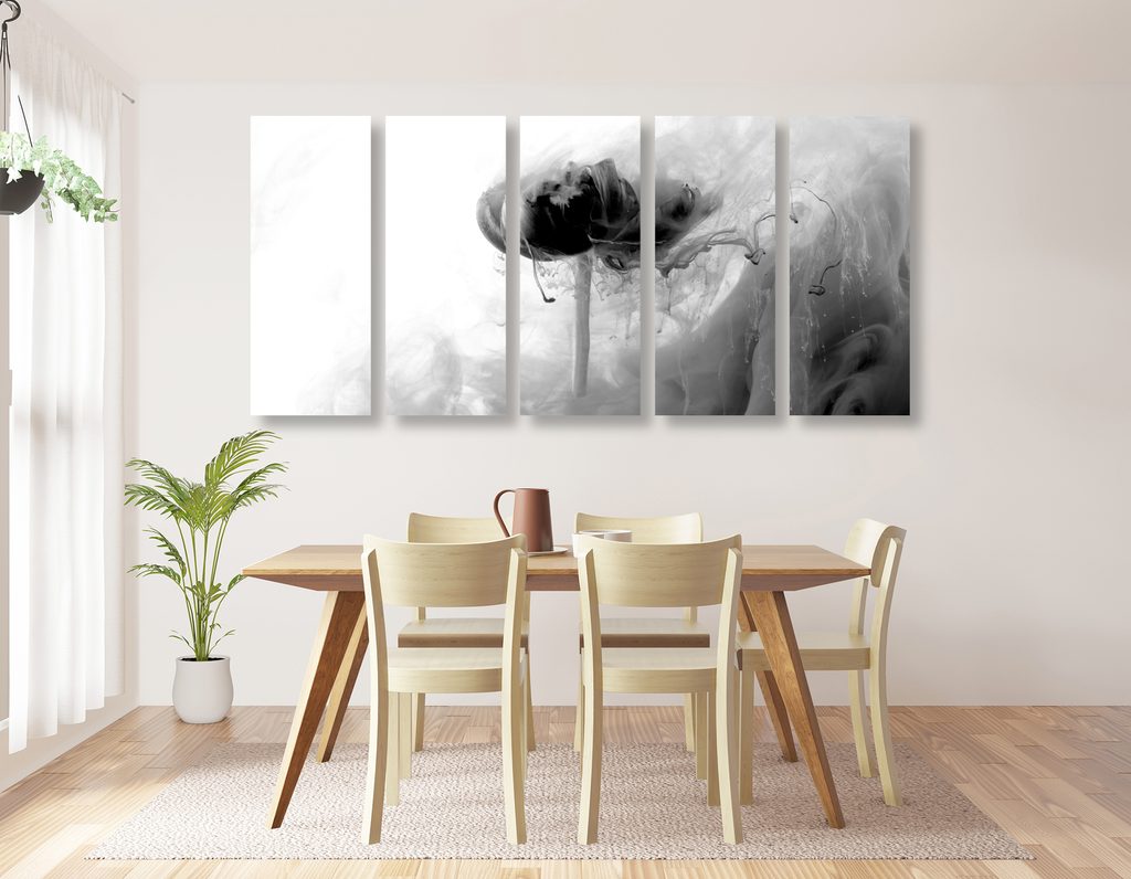 5-dielny obraz umelecké stvárnenie kvetu v čiernobielom prevedení
