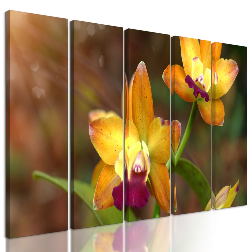5-dielny obraz unikátna zlatá orchidea