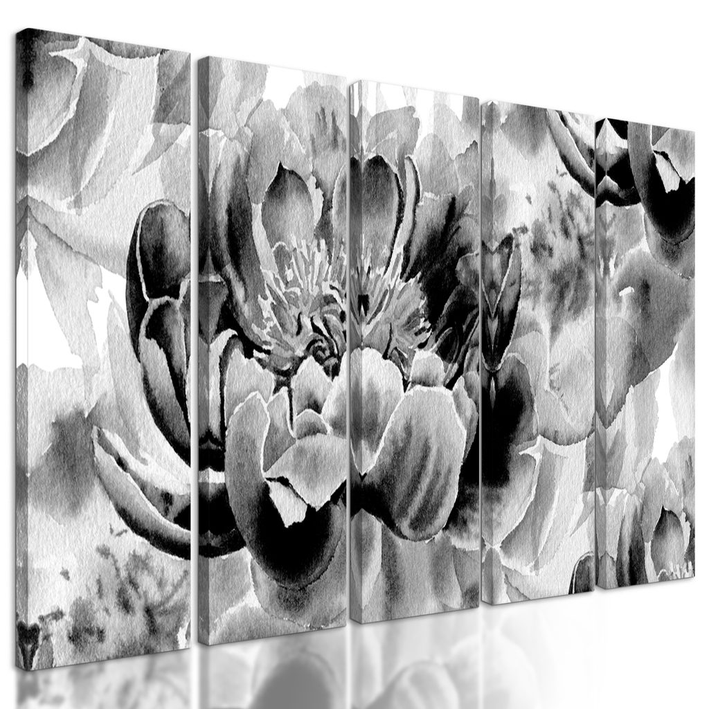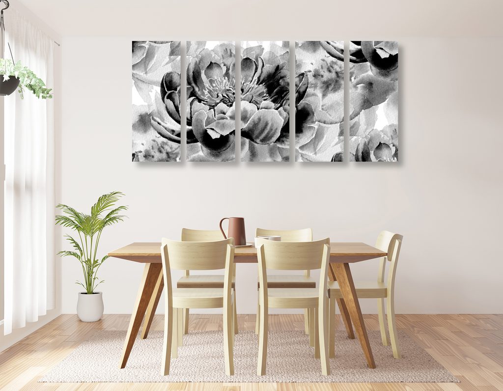 5-dielny obraz čiernobiela olejomaľba kvetov