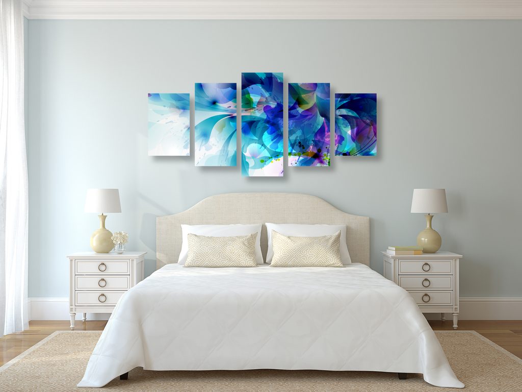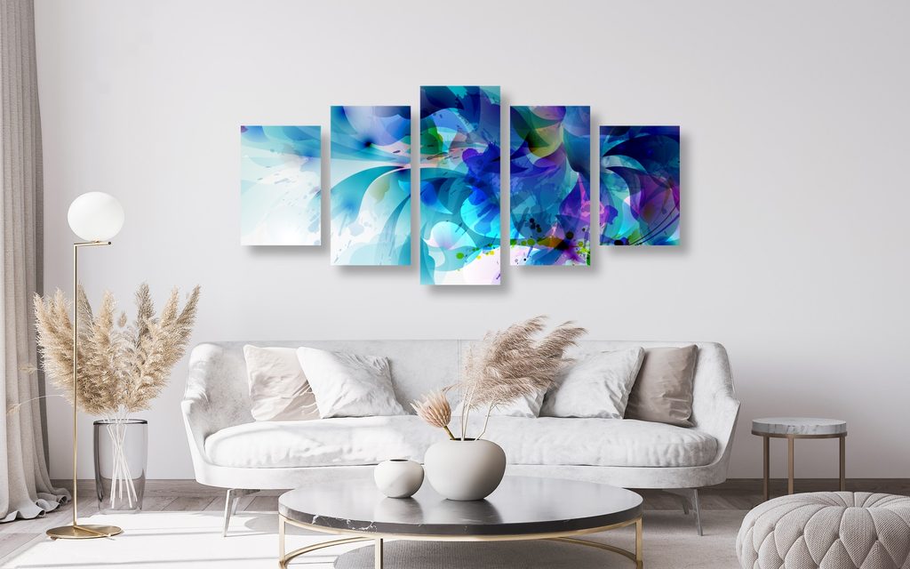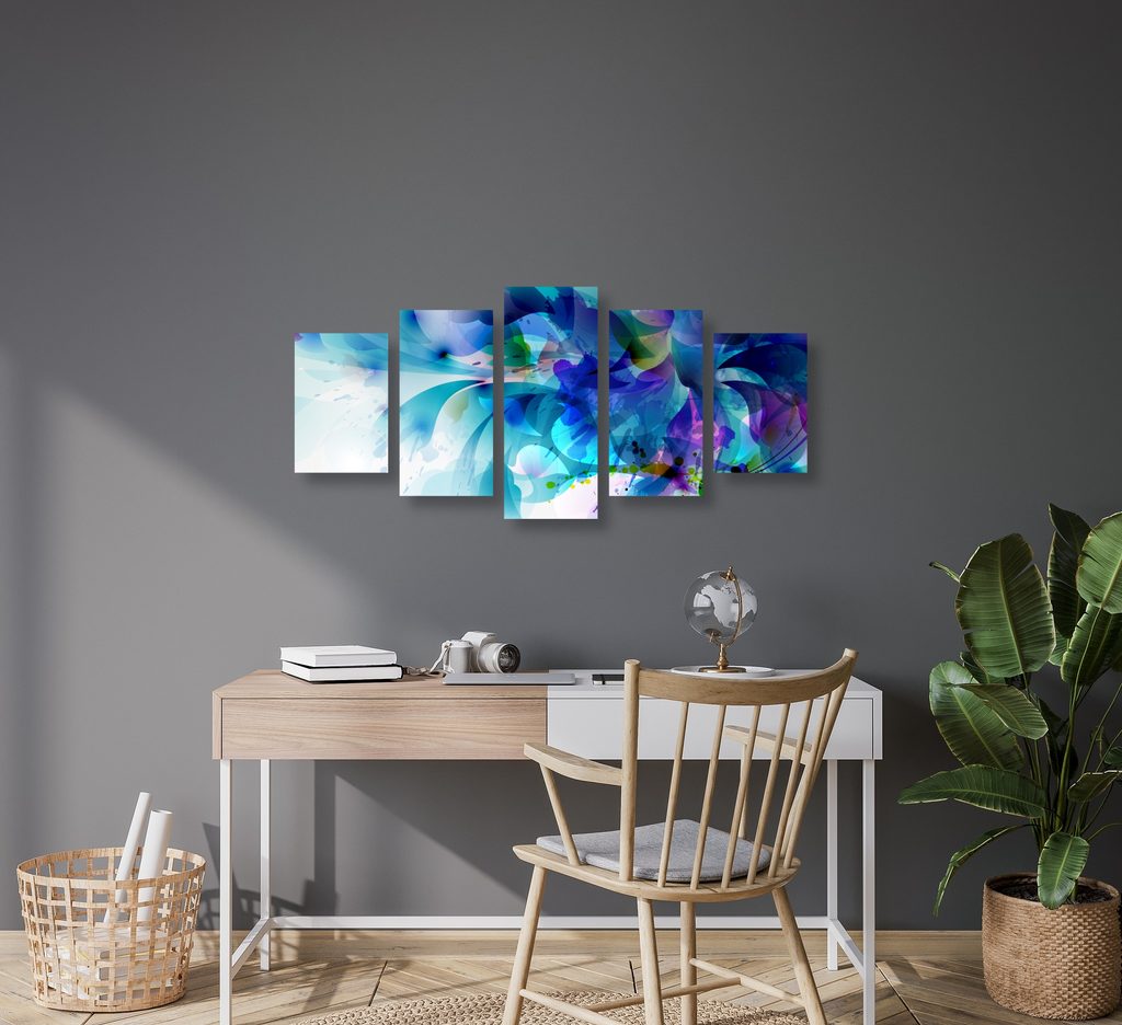 5-dielny obraz nádherná abstrakcia modrej a fialovej farby