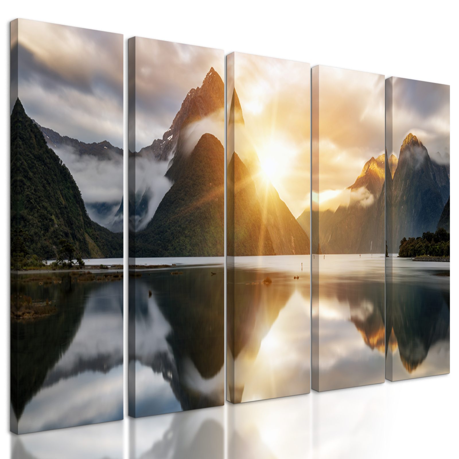 5-dielny obraz východ slnka nad jazerom na Novom Zélande