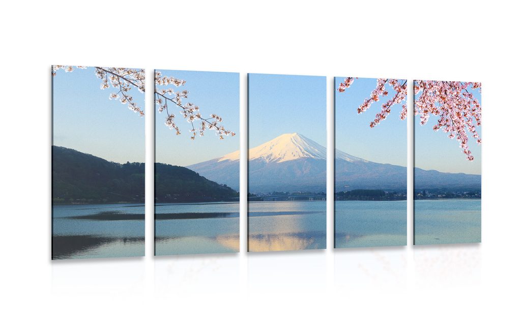 5-dielny obraz majestátna hora v čiernobielom prevedení