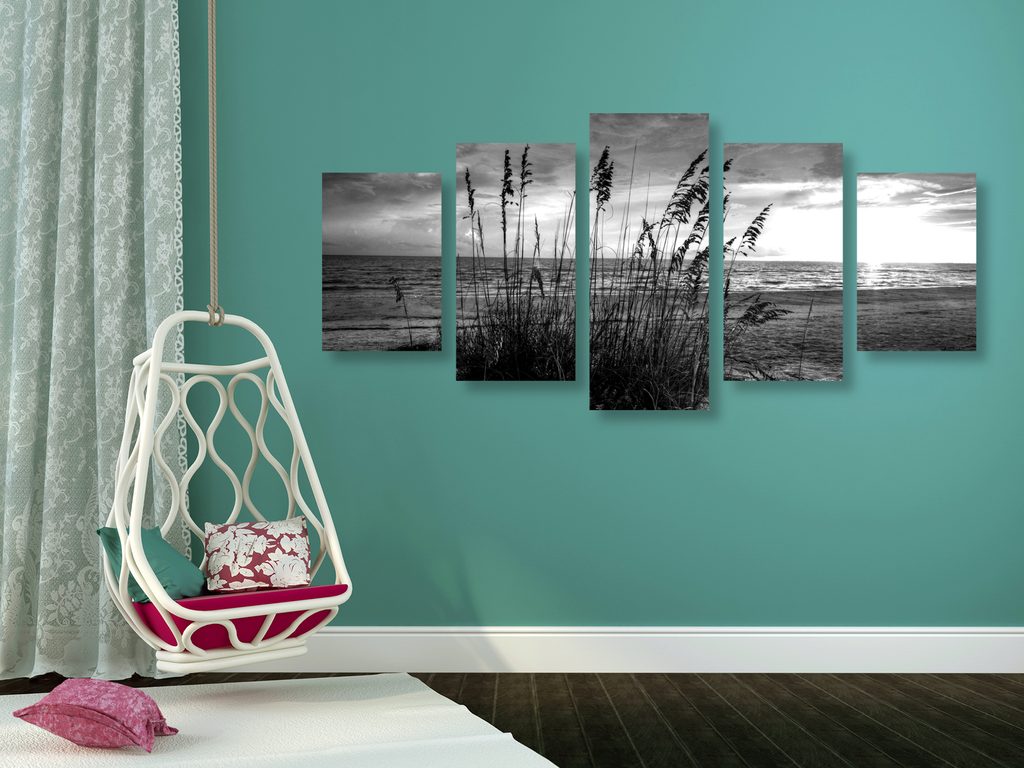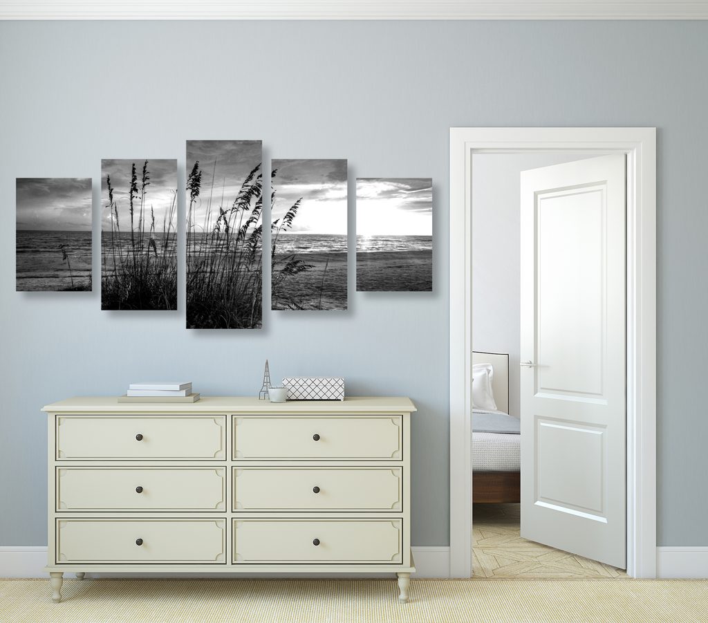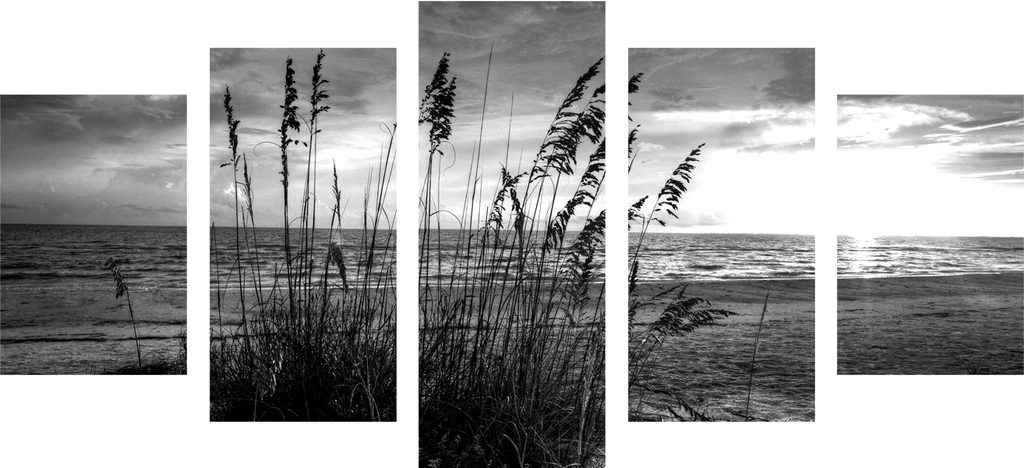 5-dielny obraz výhľad na oceán v čiernobielom prevedení
