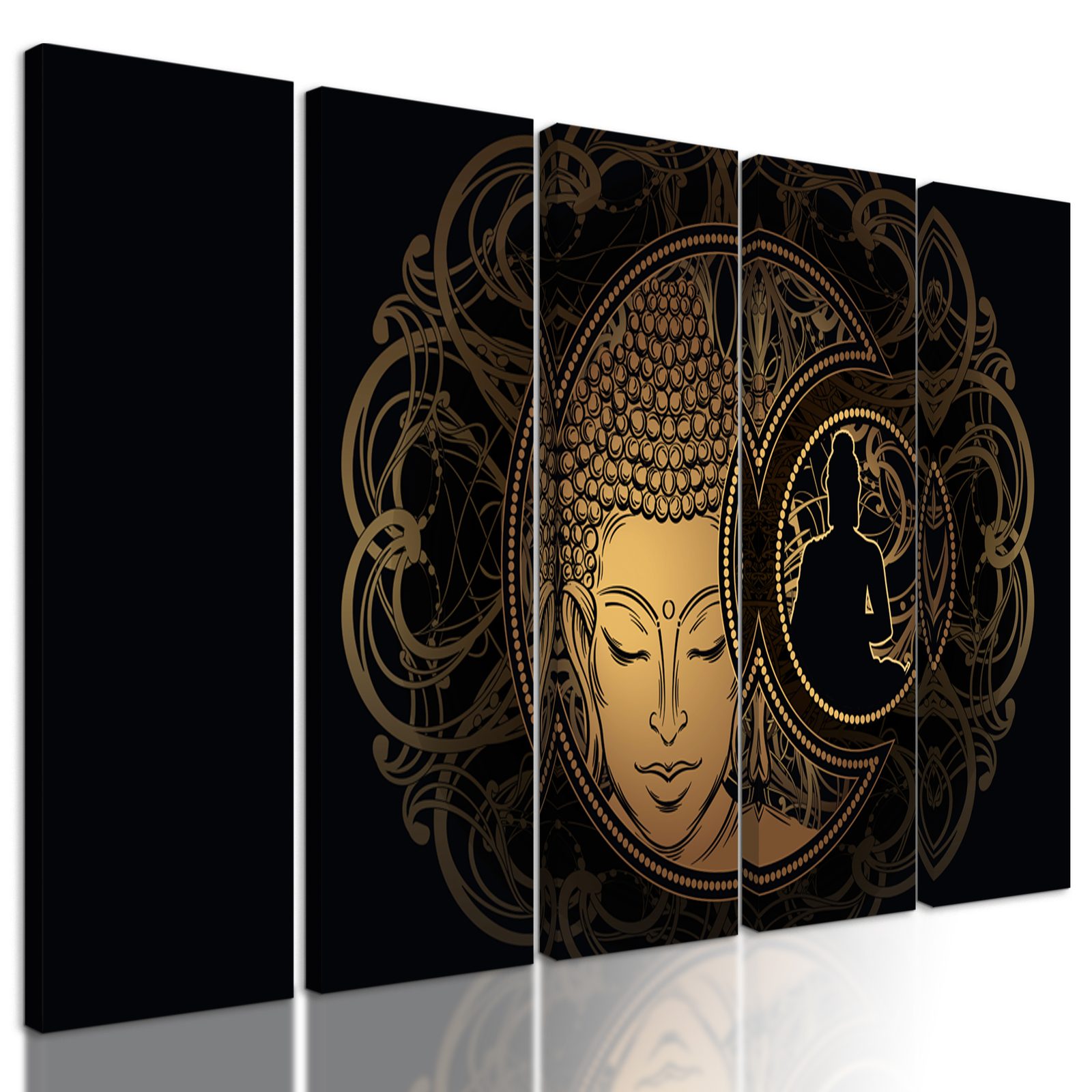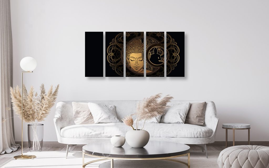 5-dielny obraz umelecká Mandala v čiernobielom prevedení