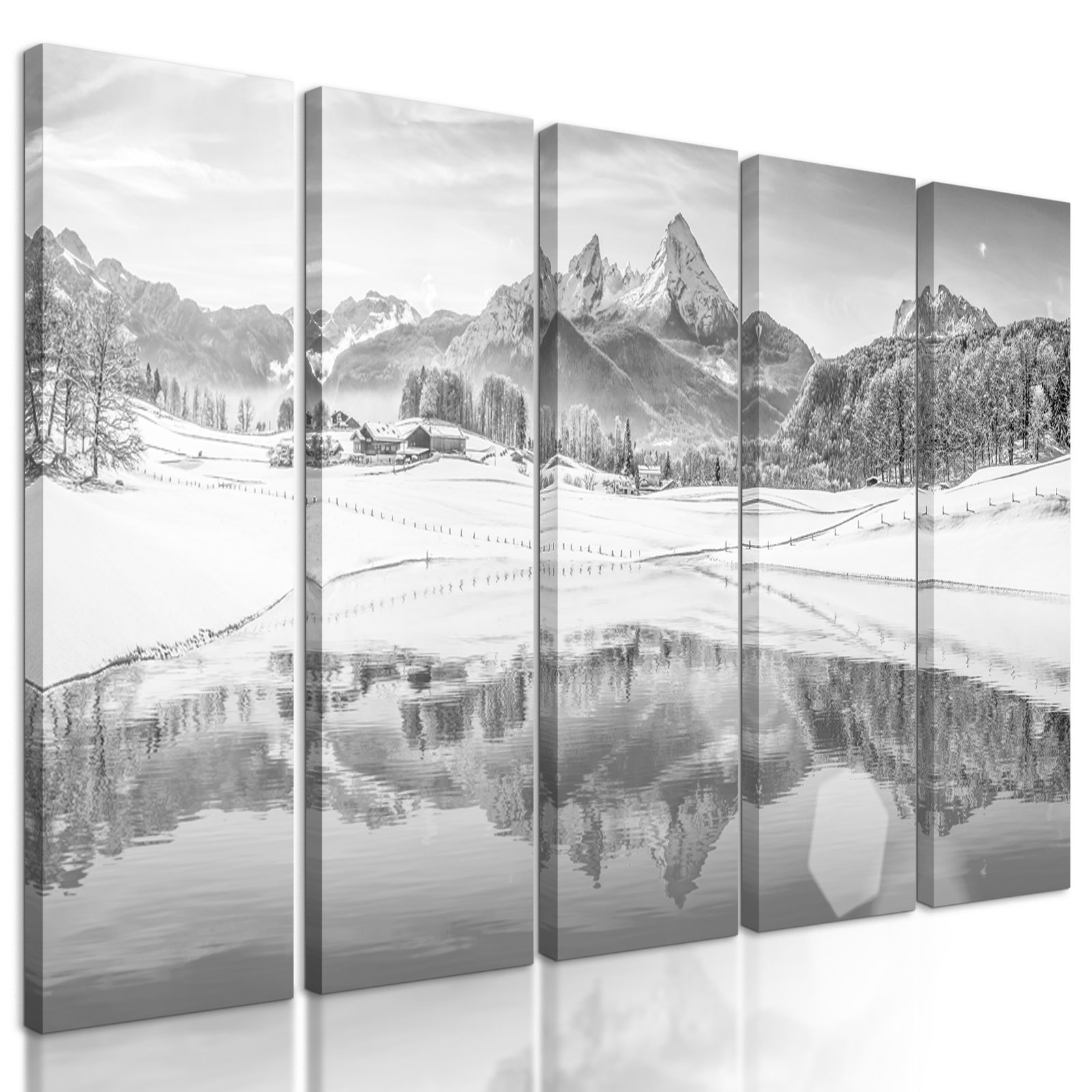 5-dielny obraz vysnená zimná krajinka v čiernobielom prevedení