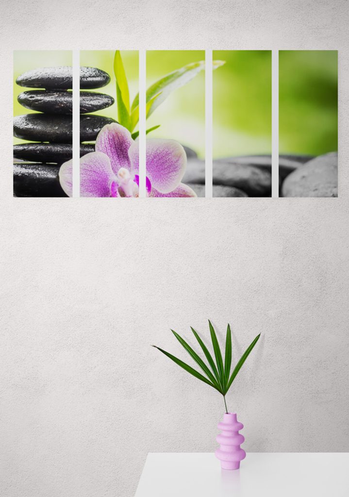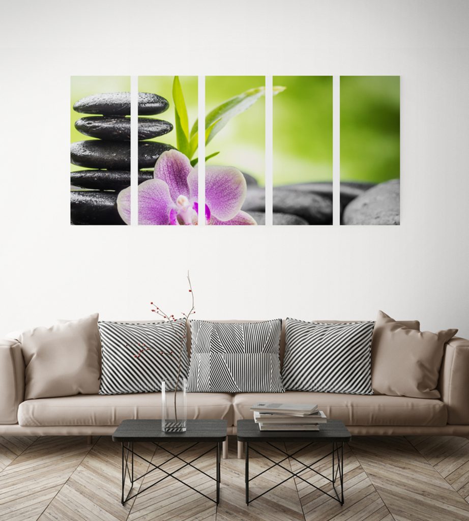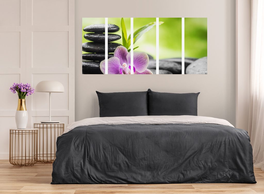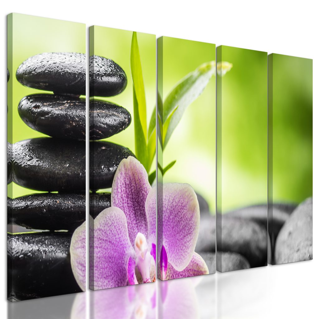5-dielny obraz čiernobiele wellnes kamene v srdci prírody