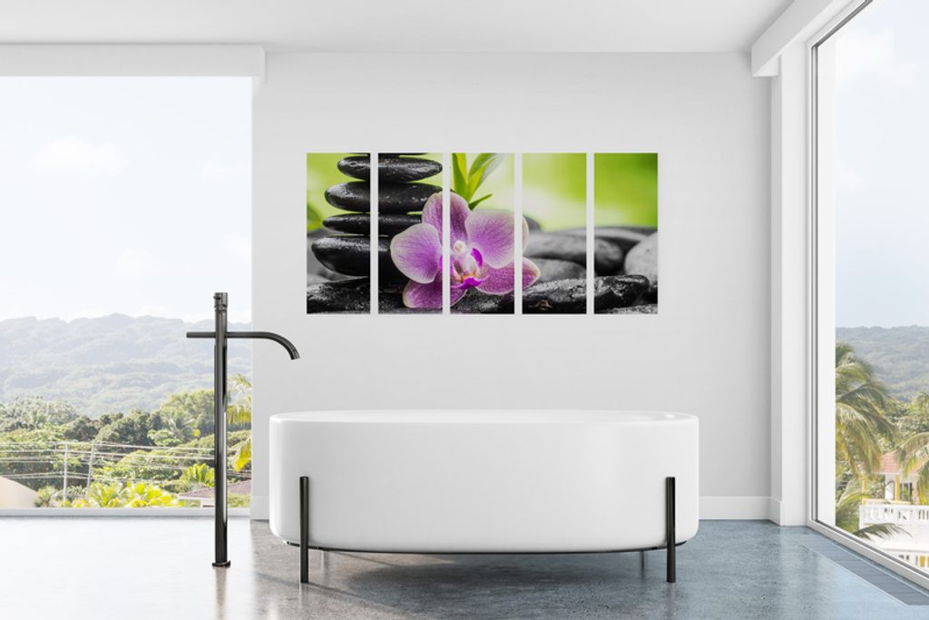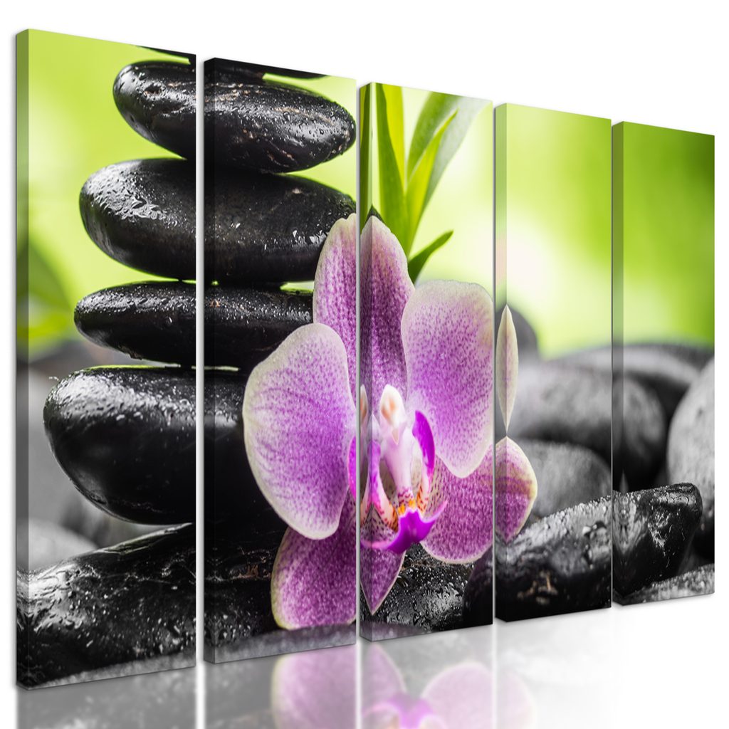 5-dielny obraz ukľudňujúce Zen zátišie s kvetmi orchidey