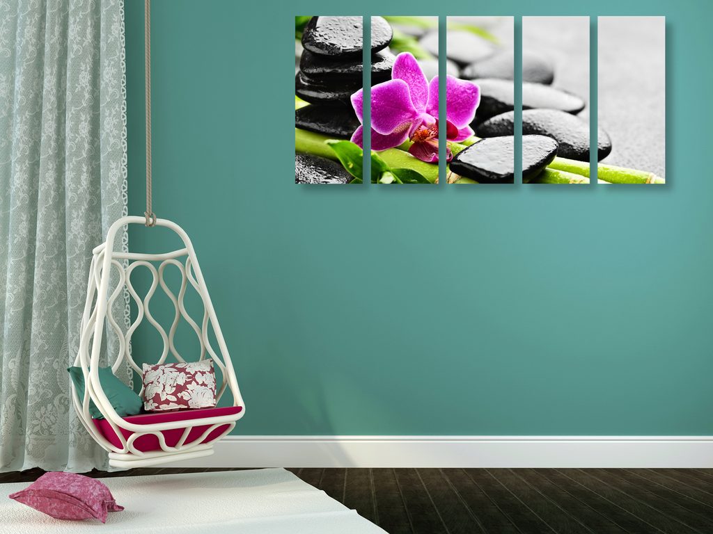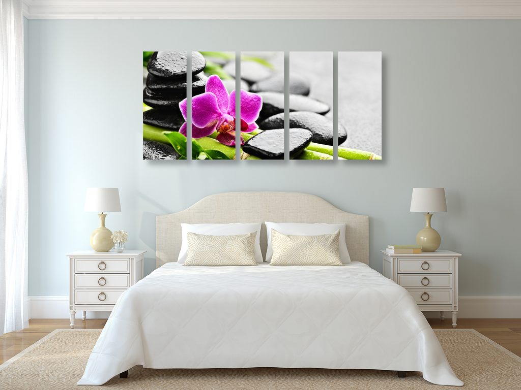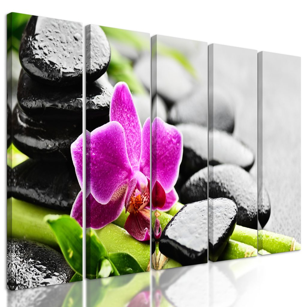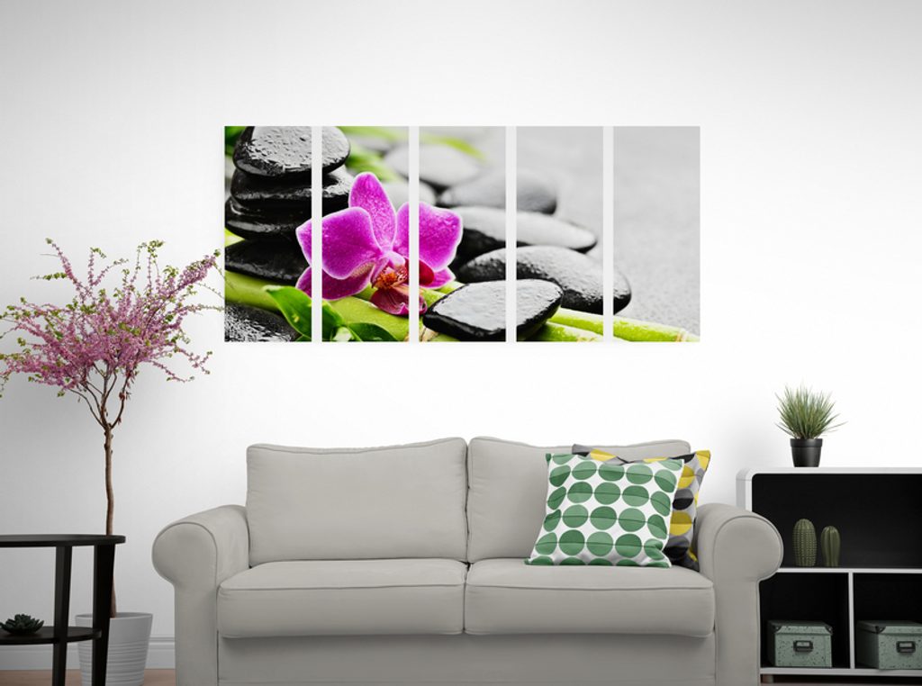 5-dielny obraz lávové kamene a zaujímavá orchidea