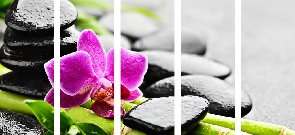 5-dielny obraz čiernobiely kvet orchidei v SPA zátiší