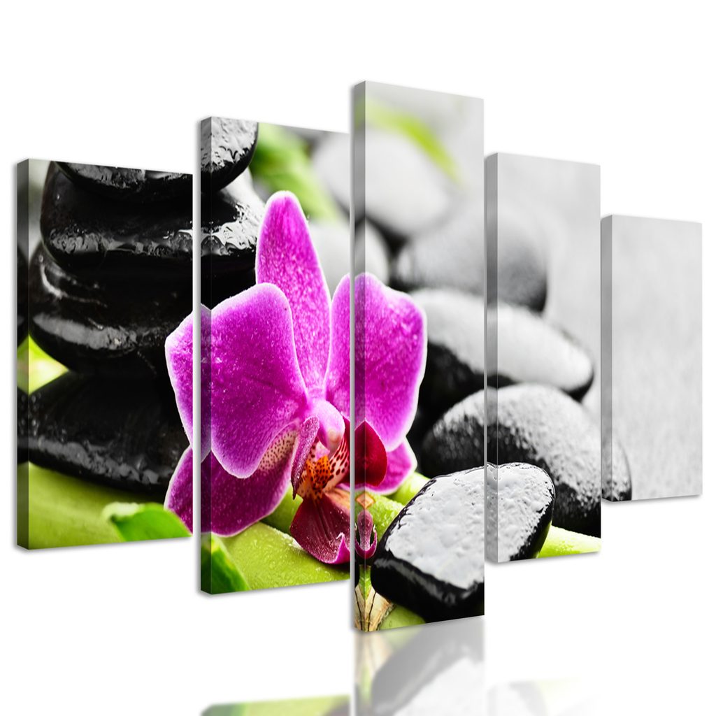5-dielny obraz lávové kamene a zaujímavá orchidea