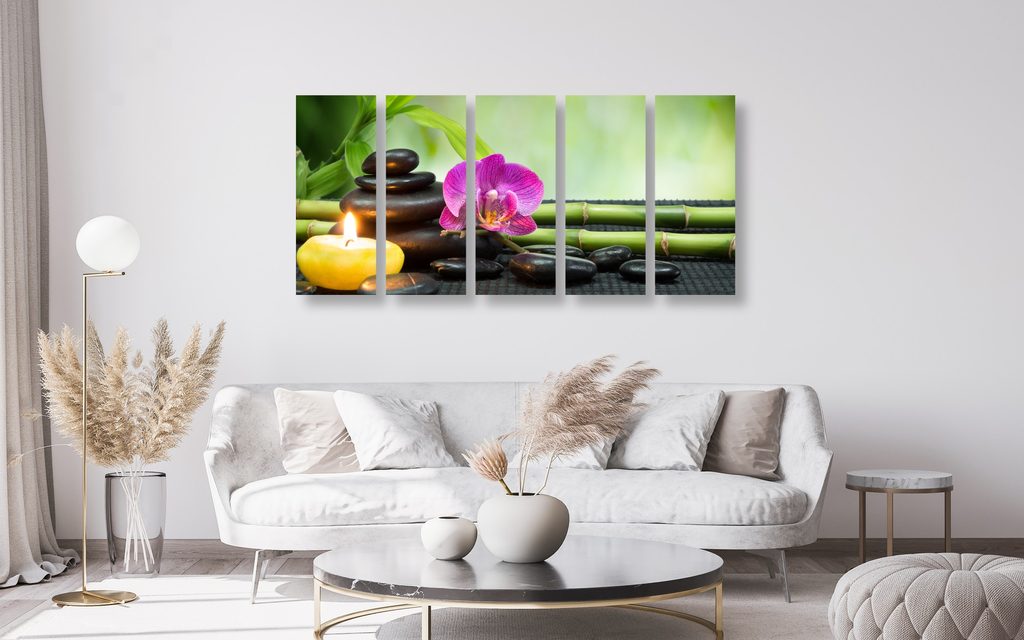 5-dielny obraz čiernobiely kvet orchidei v SPA zátiší