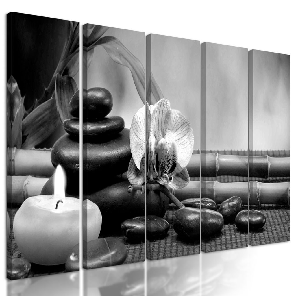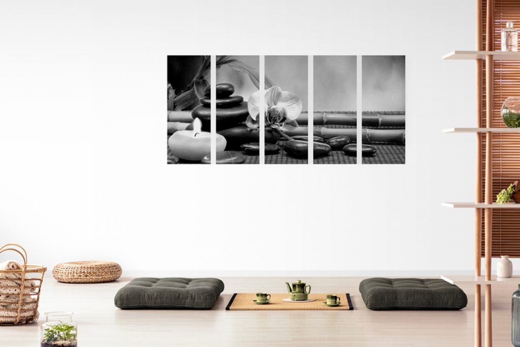 5-dielny obraz záhrada Feng Shui v čiernobielom prevedení