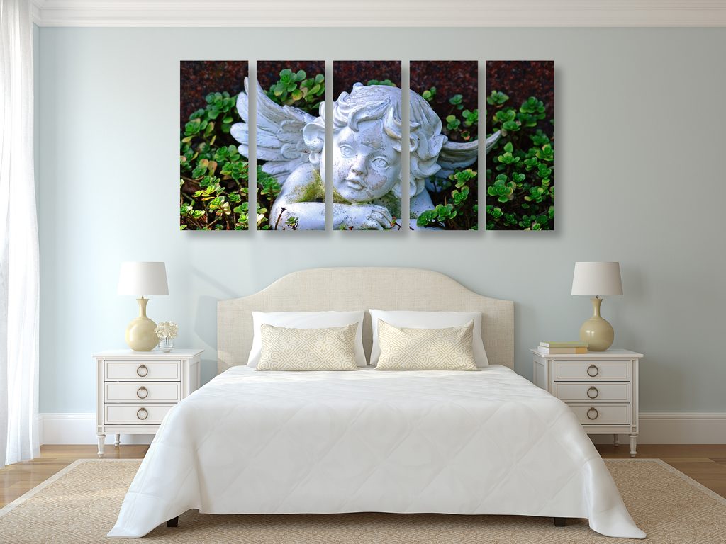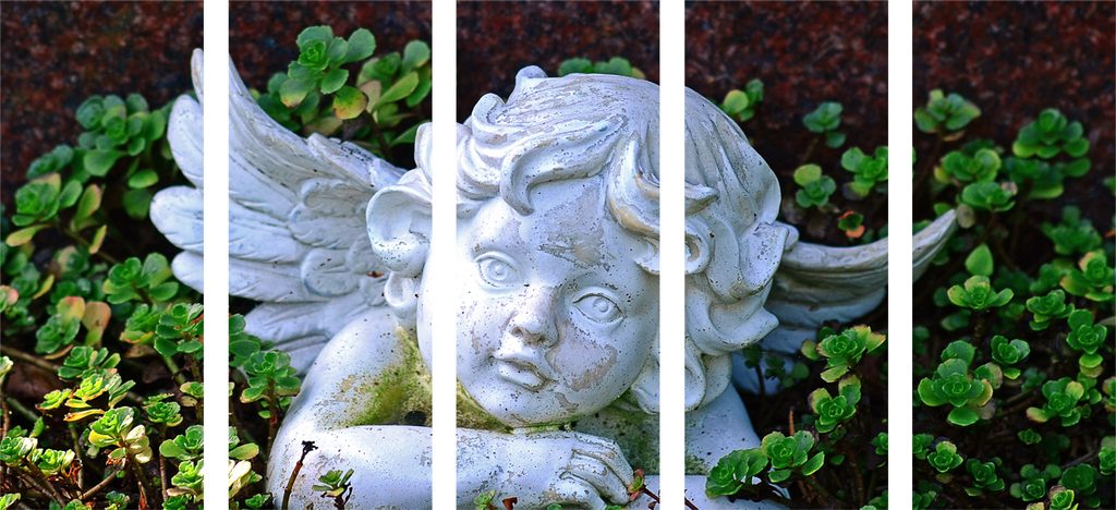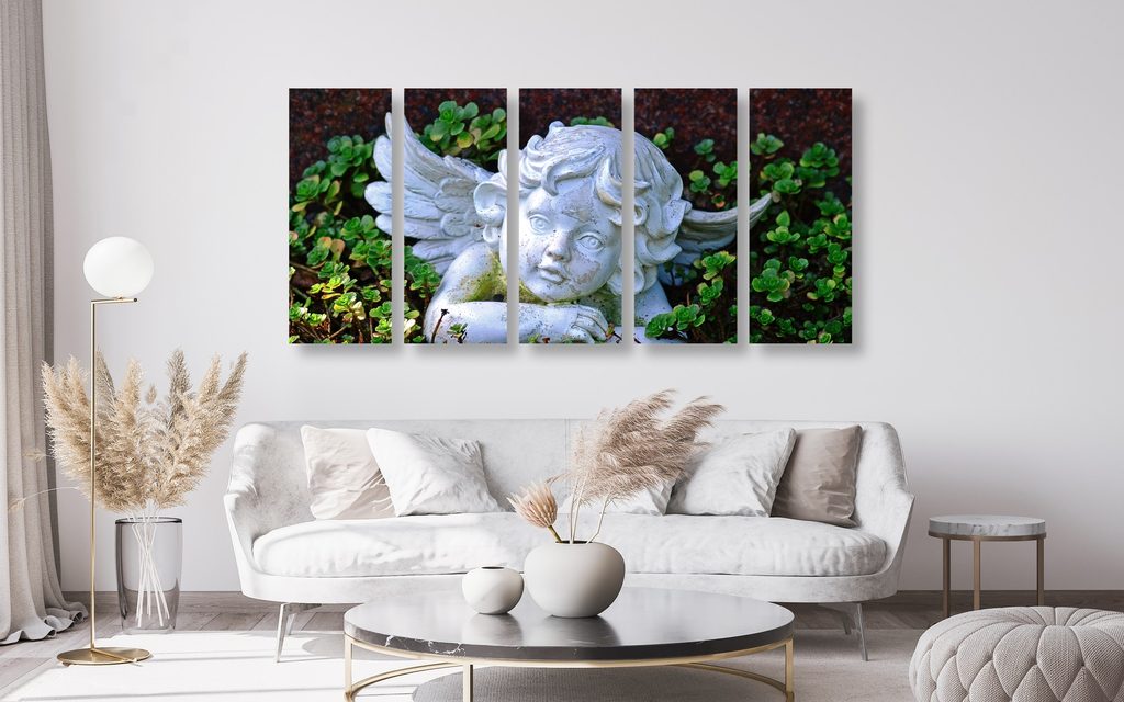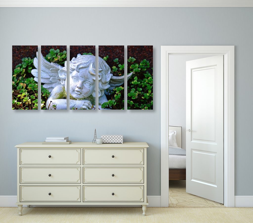 5-dielny obraz záhradný anjelik v čiernobielom prevedení