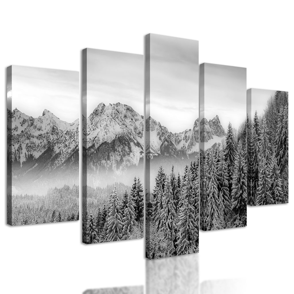 5-dielny obraz zamrznutý les v čiernobielom prevedení