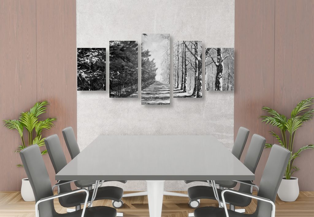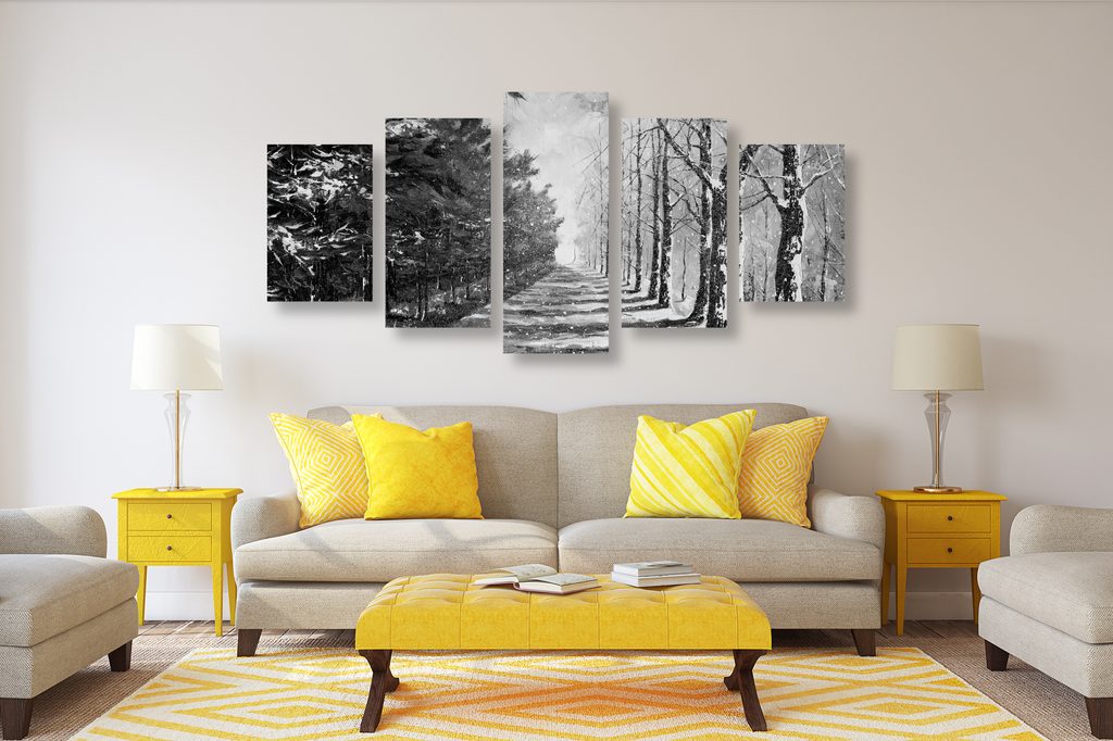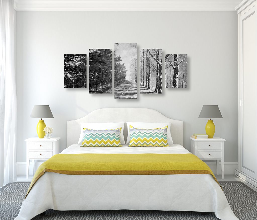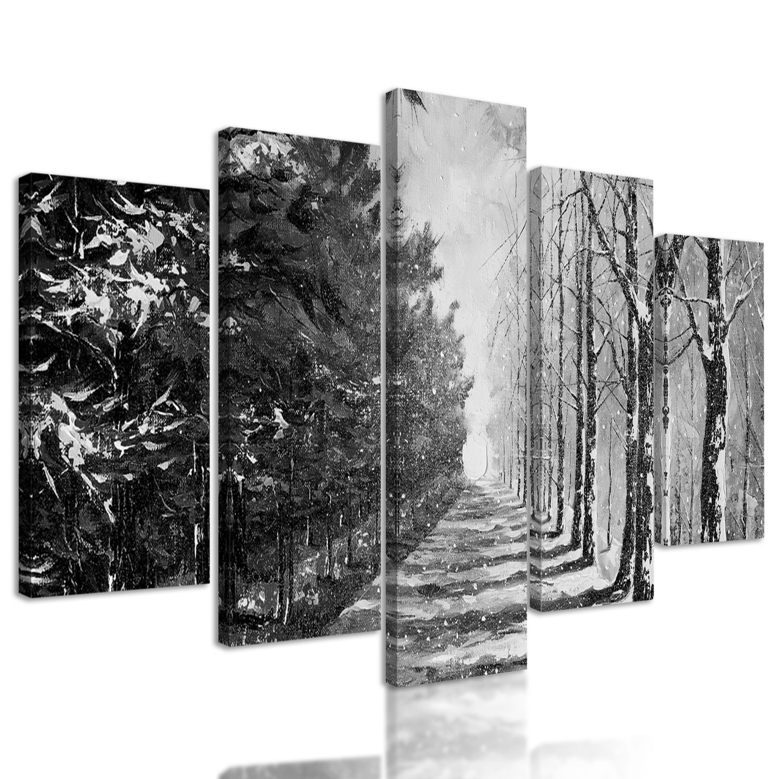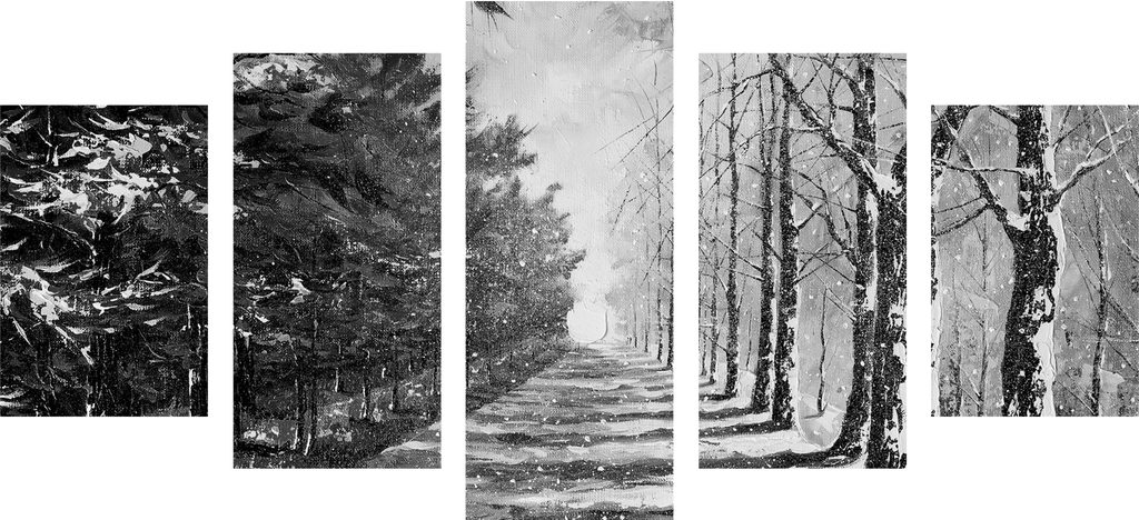 5-dielny obraz zasnežená alej v čiernobielom prevedení