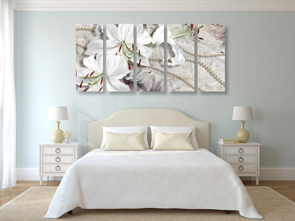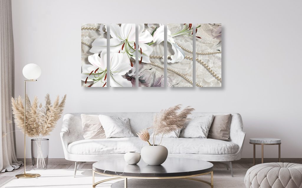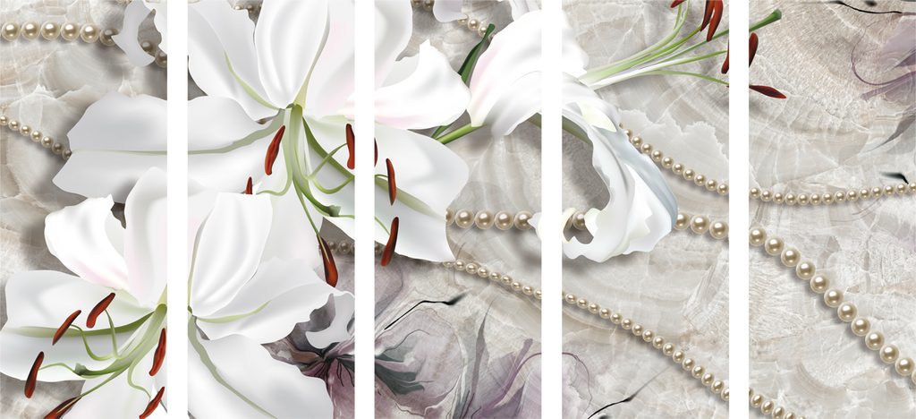 5-dielny obraz zátišie s ľáliami a perlami