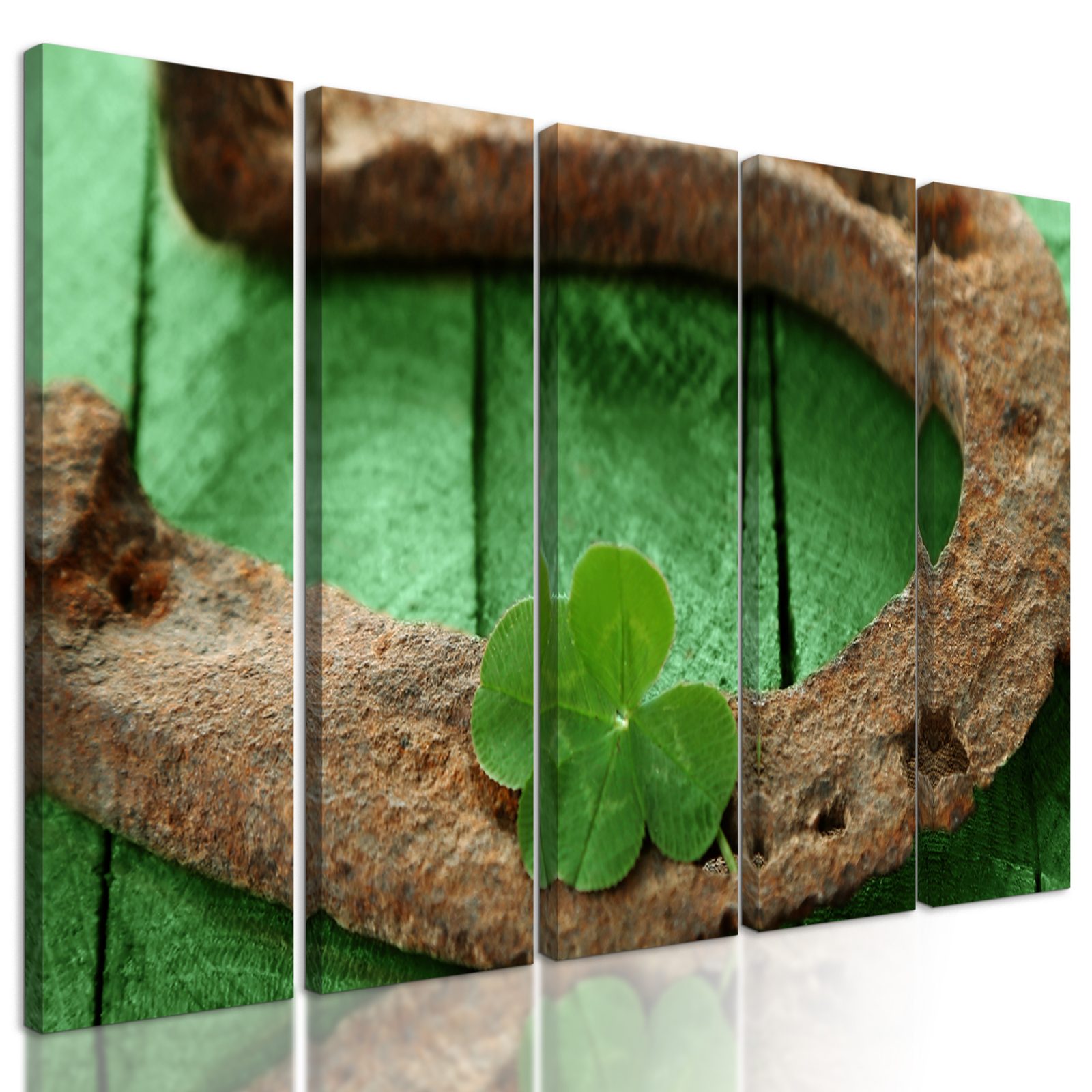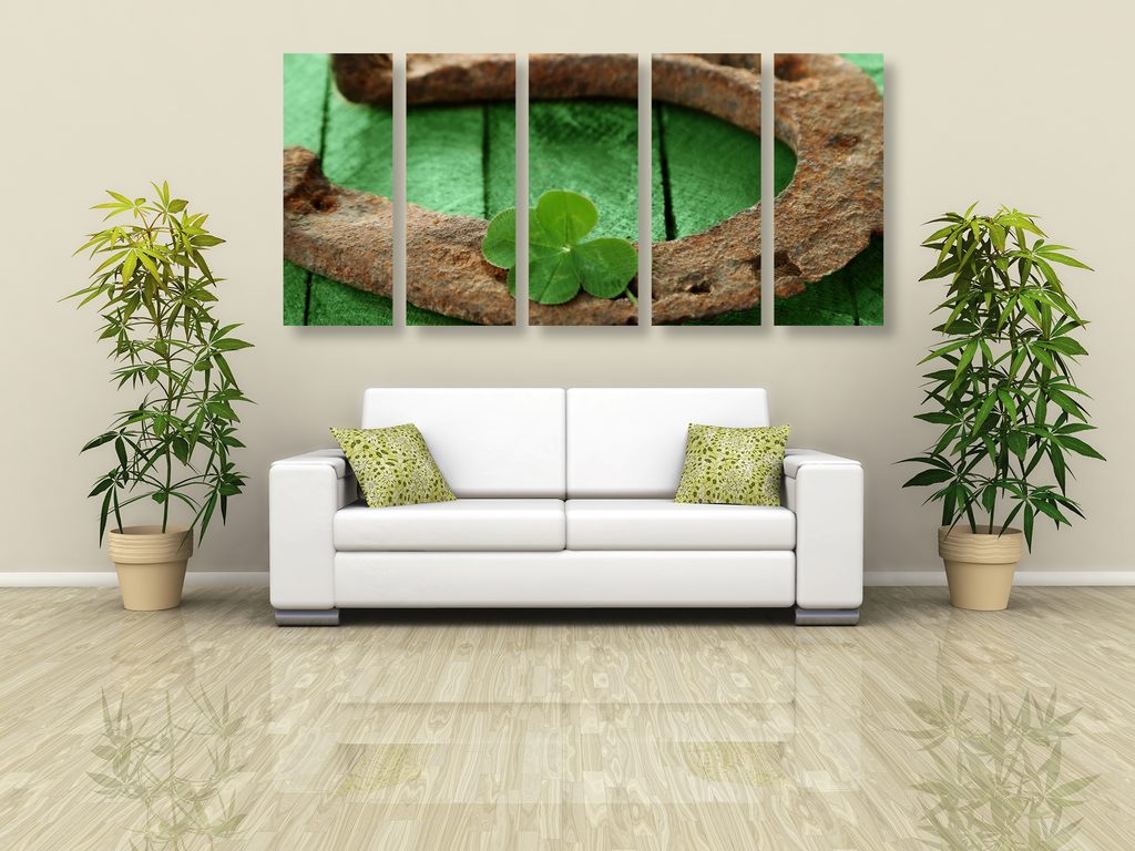 5-dielny obraz zátišie tvorené podkovou a štvorlístkom