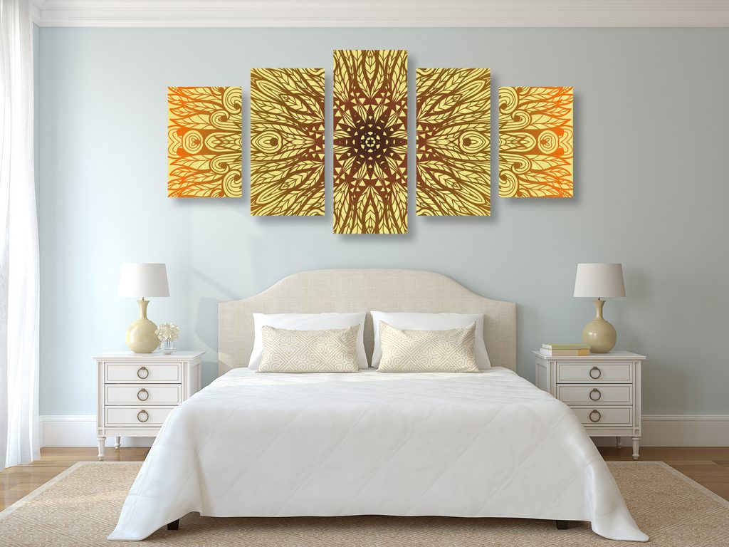 5-dielny obraz čiernobiela Mandala v indickom štýle