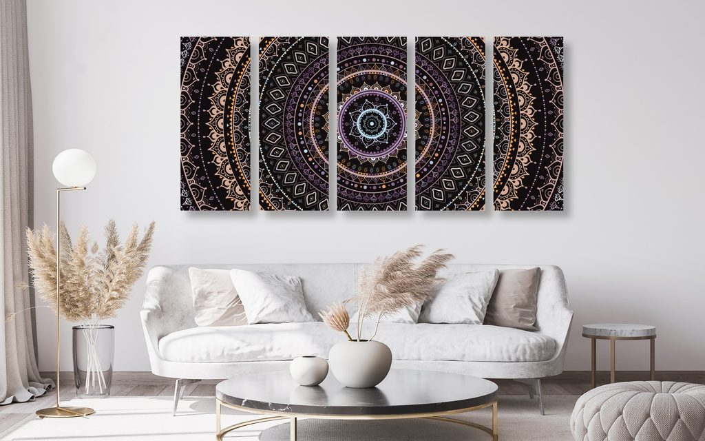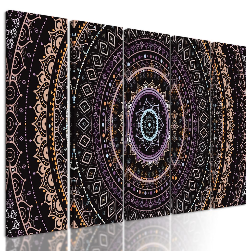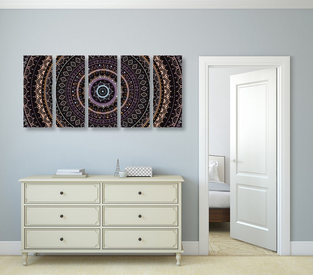 5-dielny obraz zaujímavá Mandala vo fialových farbách