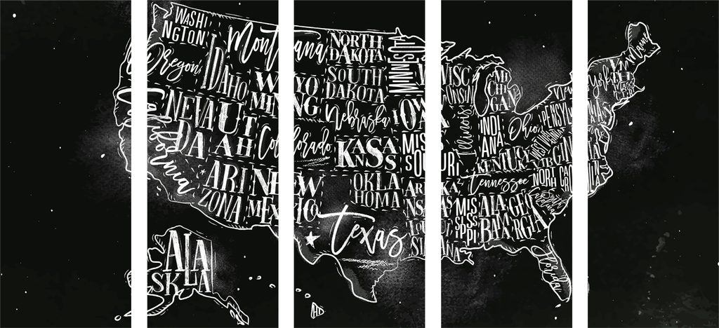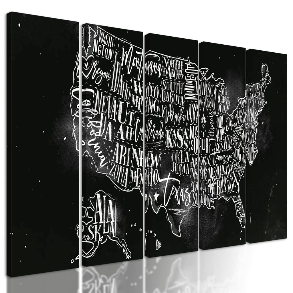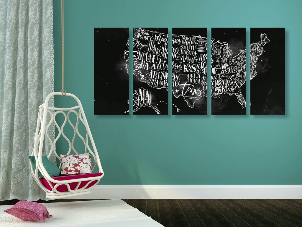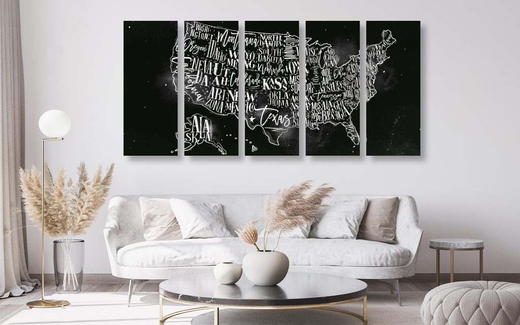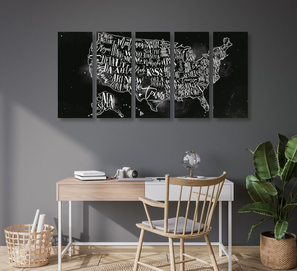 5-dielny obraz mapa sveta tvorená mnohouholníkmi v čiernobielom prevdení