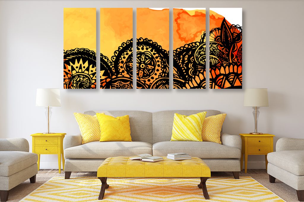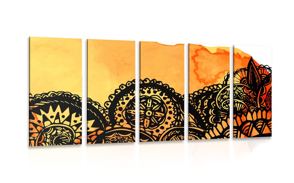 5-dielny obraz zaujímavá Mandala v čiernobielych farbách