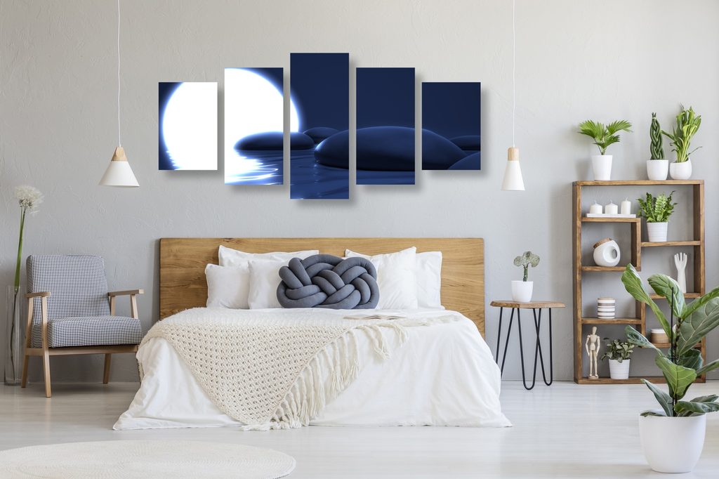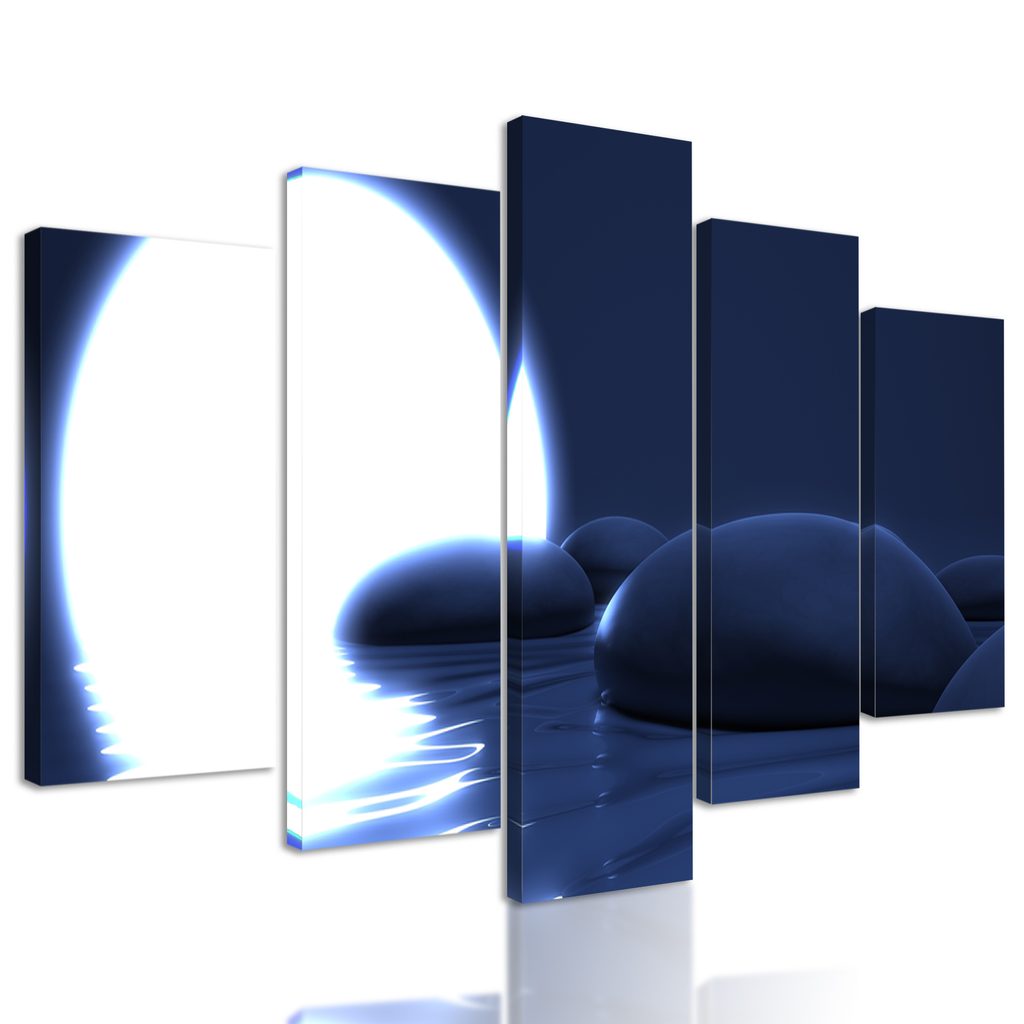 5-dielny obraz zaujímavé kamene pod splnom mesiaca