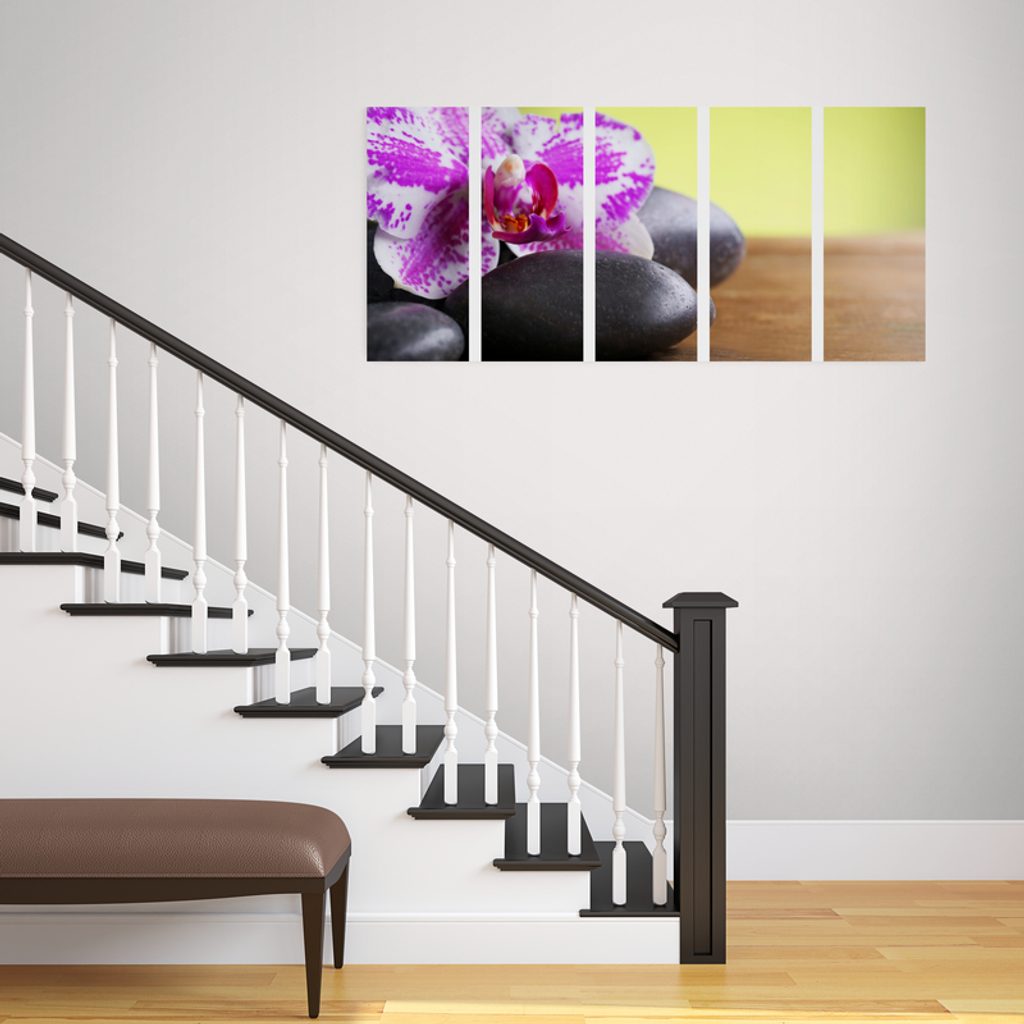 5-dielny obraz zaujímavo sfarbená orchidea a Zen kamene
