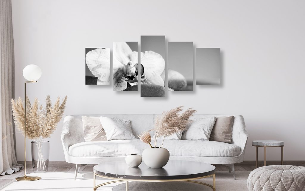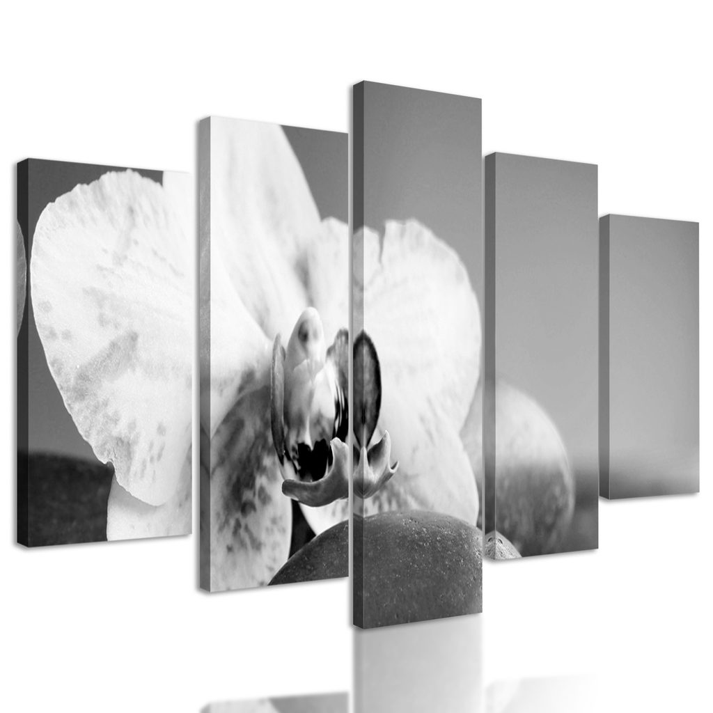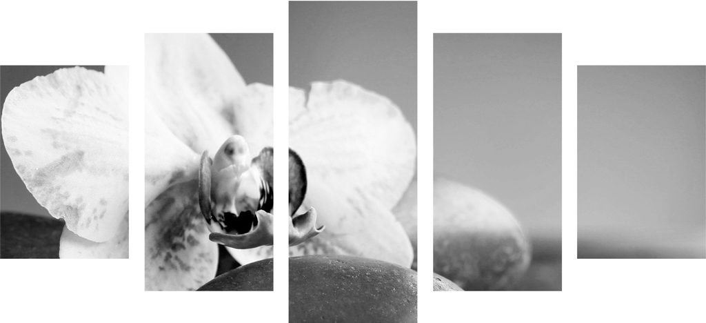 5-dielny obraz čiernobiely kvet orchidei v SPA zátiší