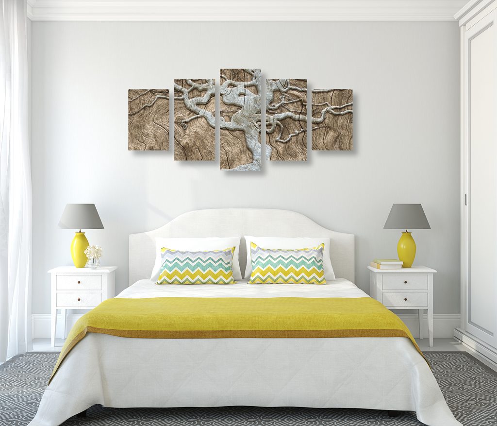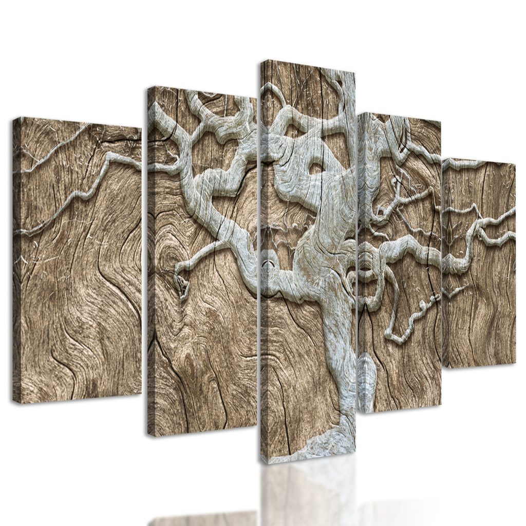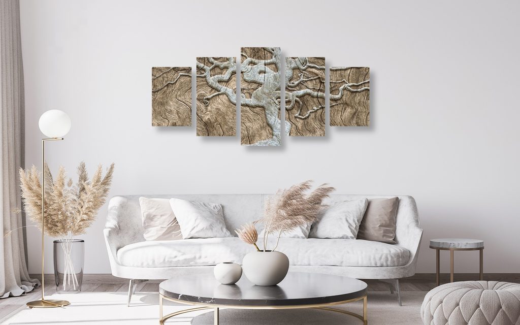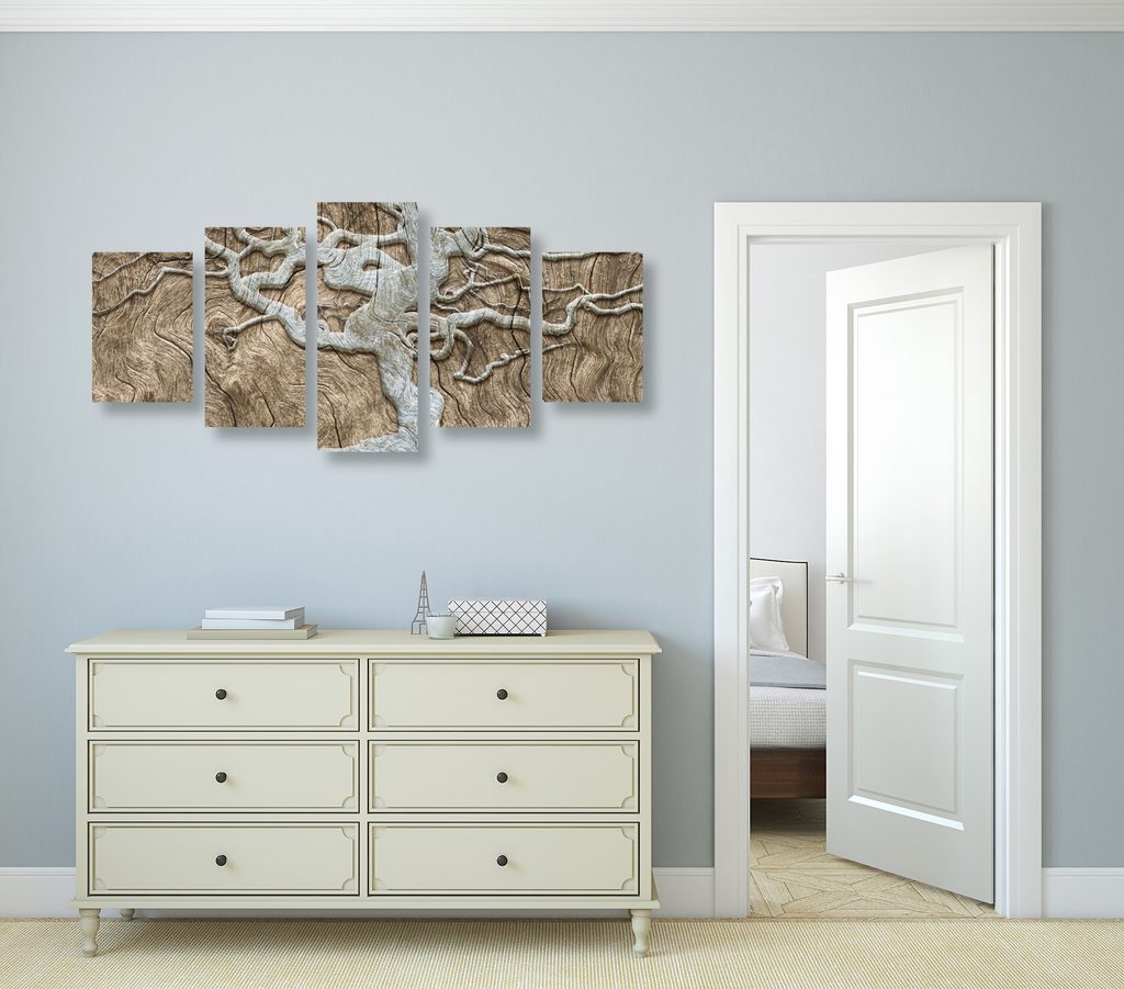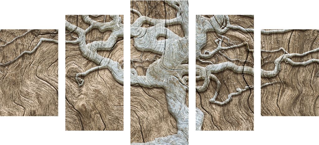 5-dielny obraz zaujímavý abstraktný strom na béžovom dreve