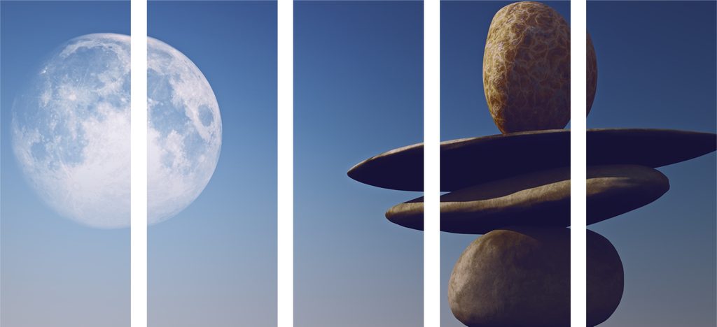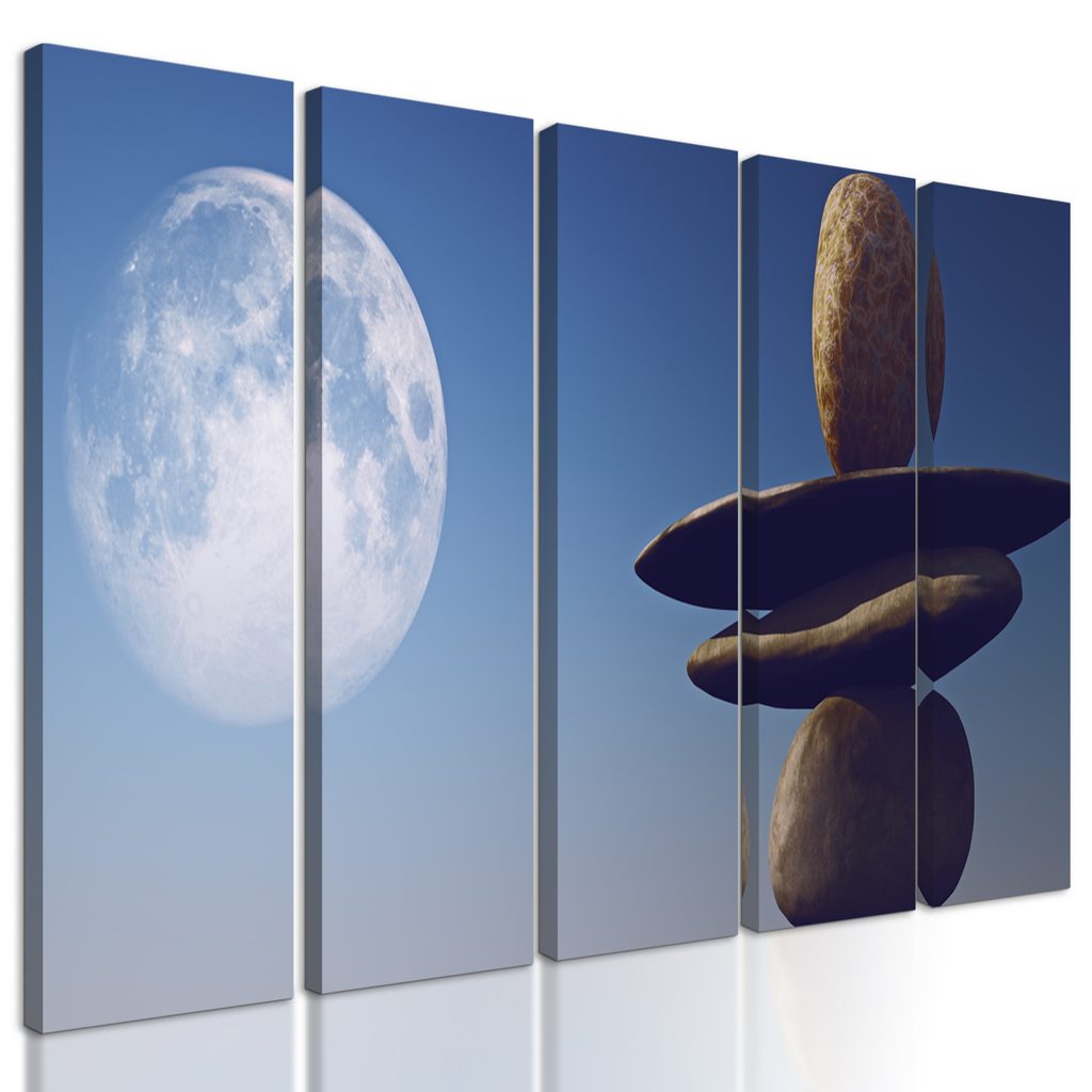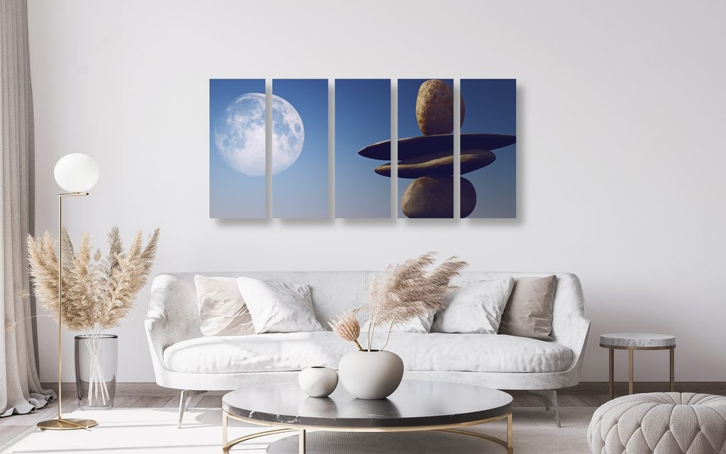 5-dielny obraz záhrada Feng Shui v čiernobielom prevedení