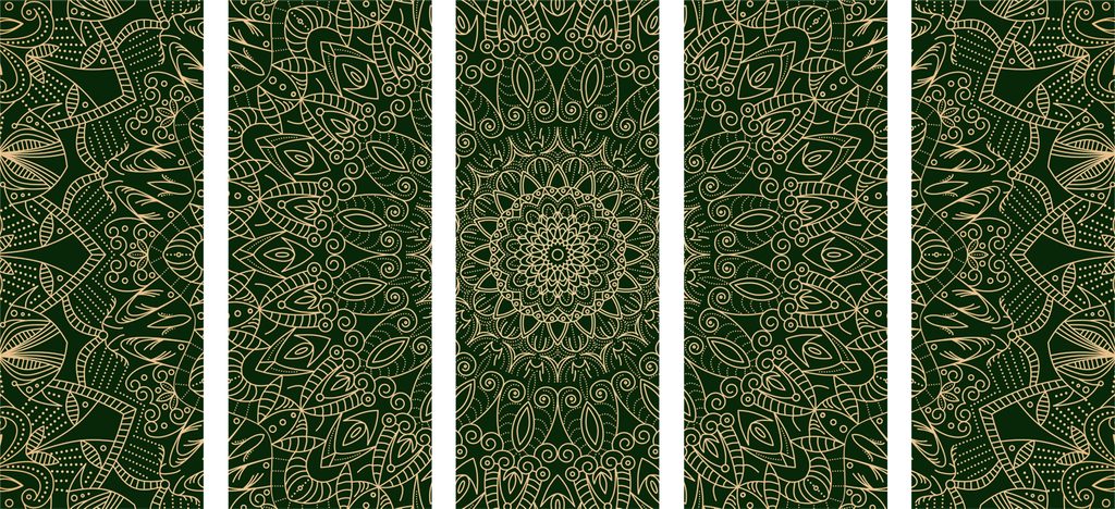 5-dielny obraz kvetinová Mandala v čiernobielom prevedení