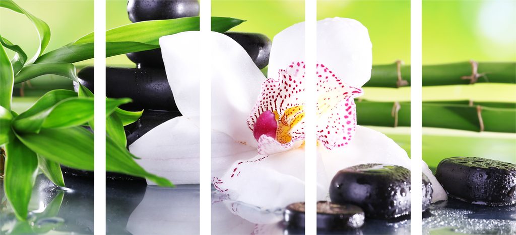 5-dielny obraz čiernobiela Mandala v štýle kvetov