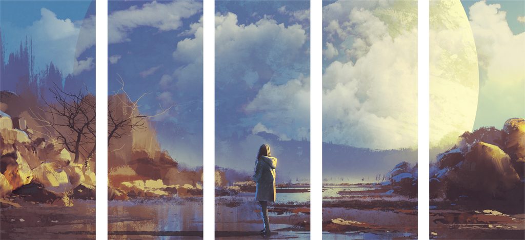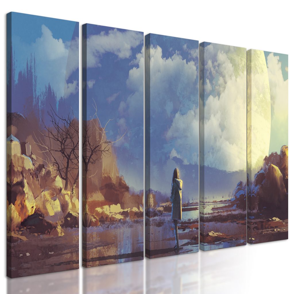 5-dielny obraz žena vo futuristickom svete