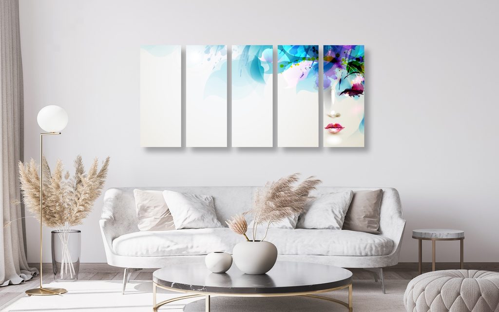 5-dielny obraz elgantnosť ženy v čiernobielom prevedení