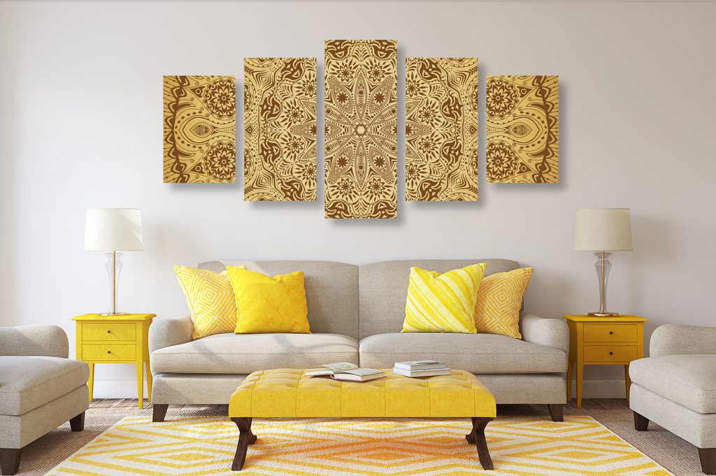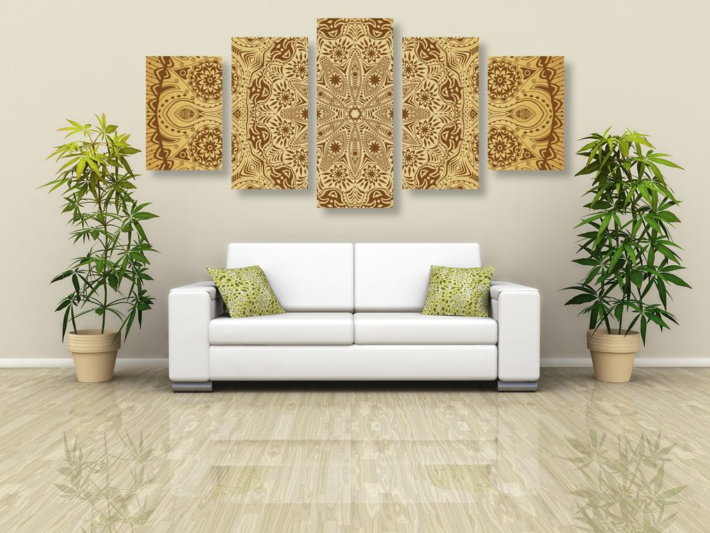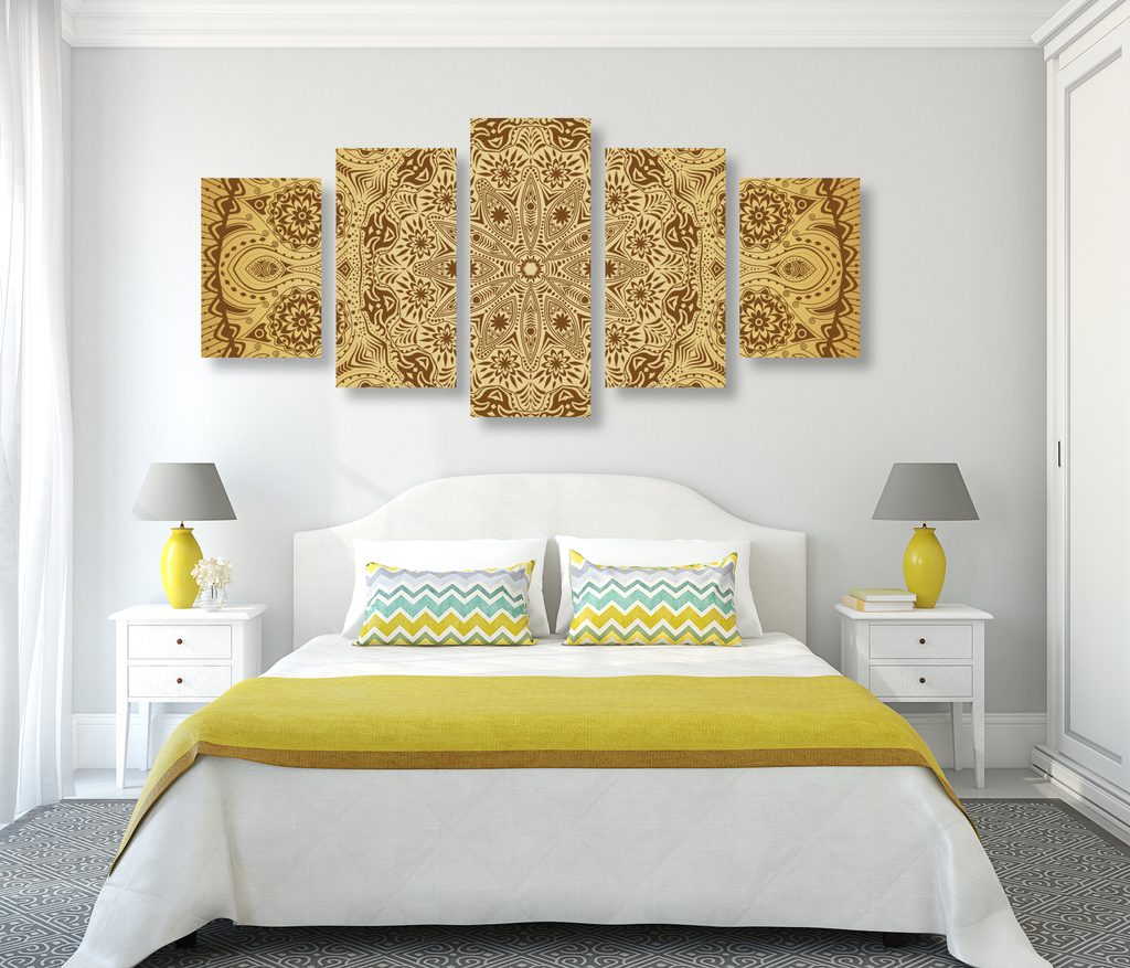 5-dielny obraz Mandala na telovom pozadí v čiernobielom prevedení