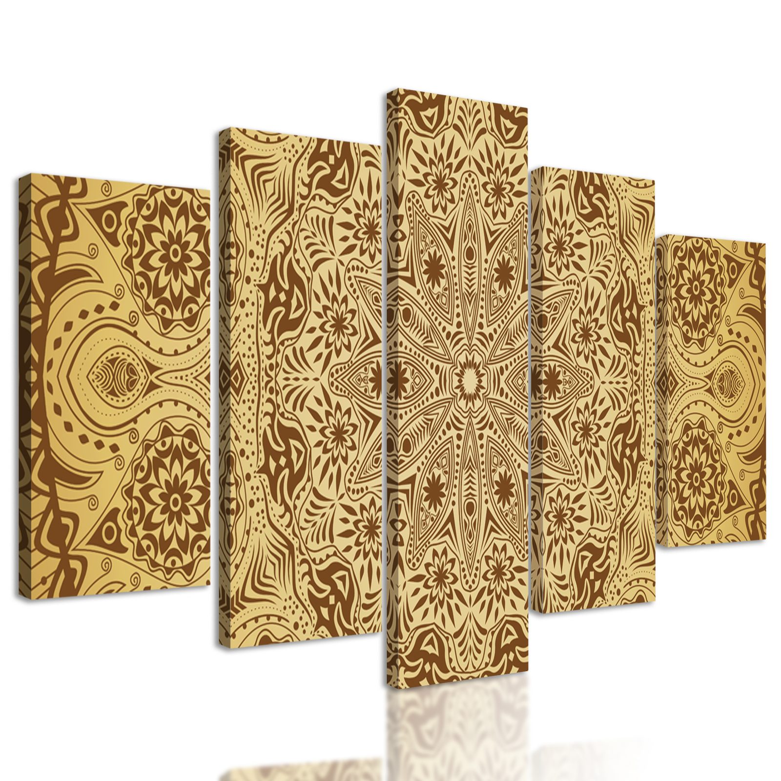 5-dielny obraz starodávna Mandala v čiernobielom prevedení