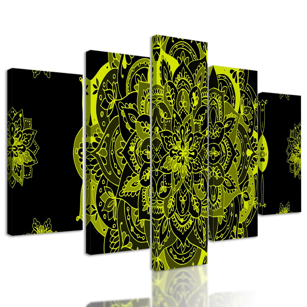 5-dielny obraz tmavomodrá Mandala na šedom pozadí