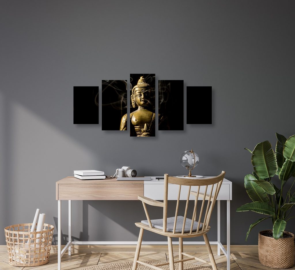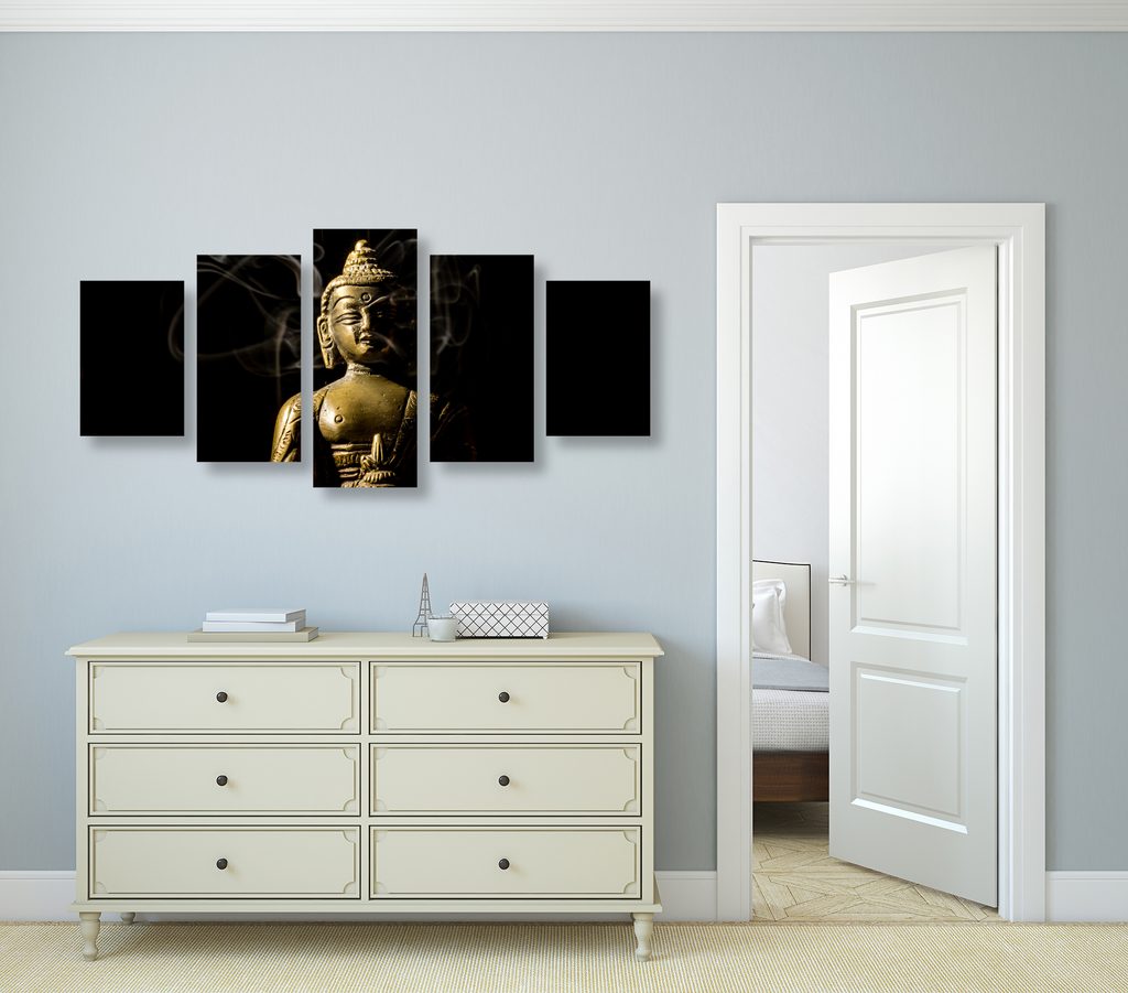 5-dielny obrazu Budha zahalený dymom