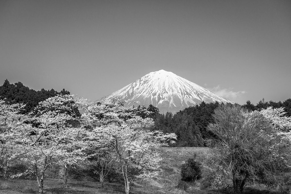 Fototapeta čiernobiela Fuji v objatí japonskej prírody