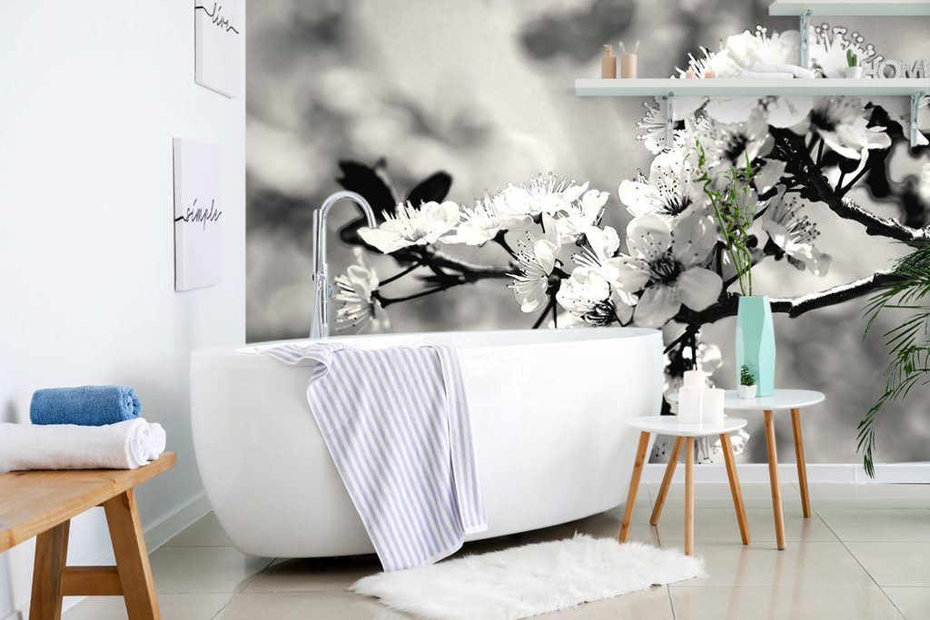 Fototapeta čiernobiele kvietky čerešne