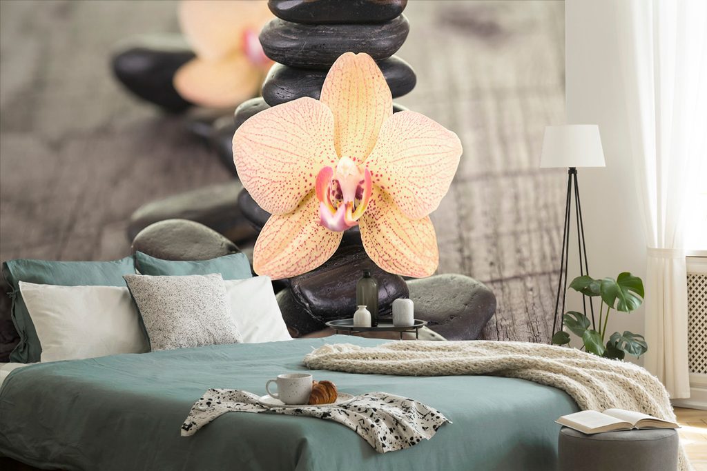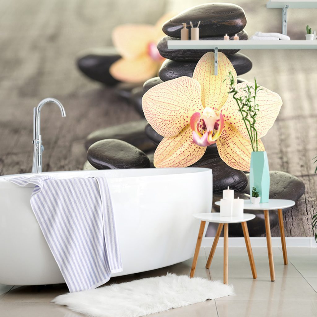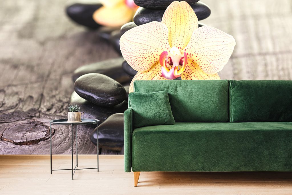 Fototapeta krásna orchidea so zen kameňmi
