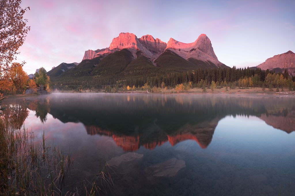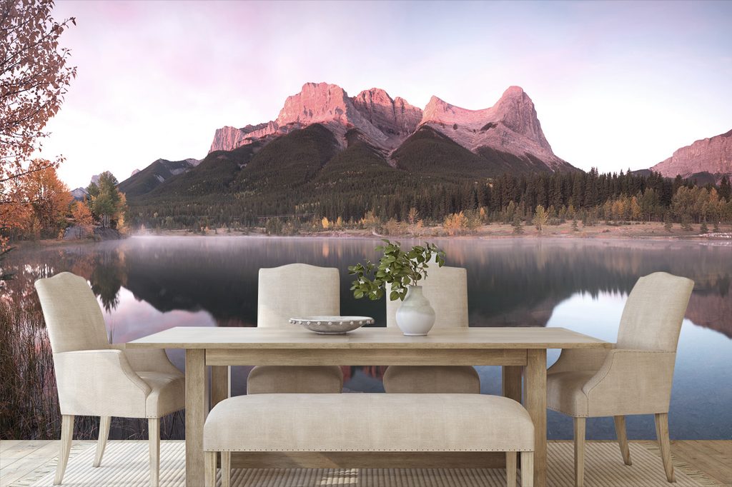 Fototapeta západ slnka pri jazere v Dolomitoch