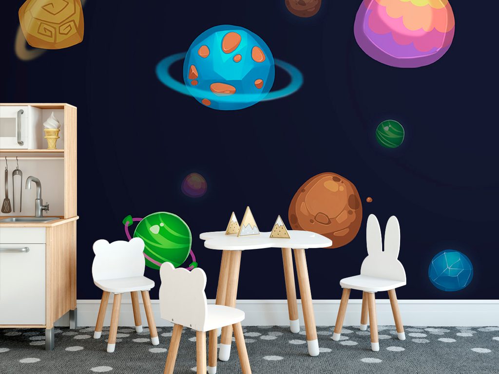 Jedinečná samolepiaca tapeta kreslené planétky