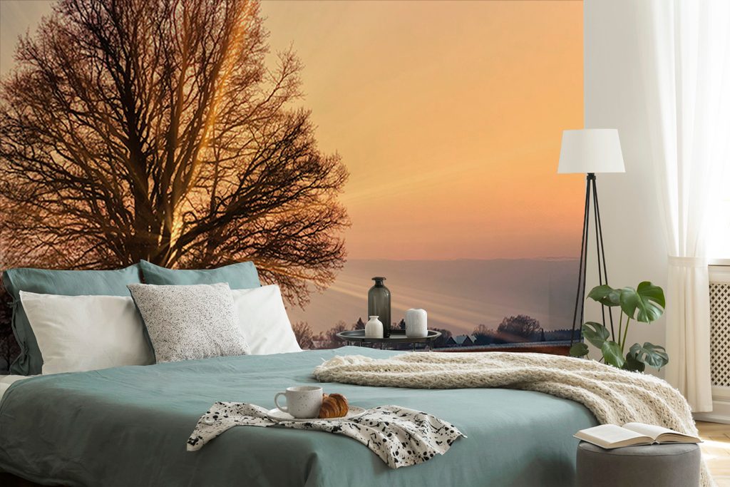 Samolepiaca tapeta spln nad zahmlenou dedinkou