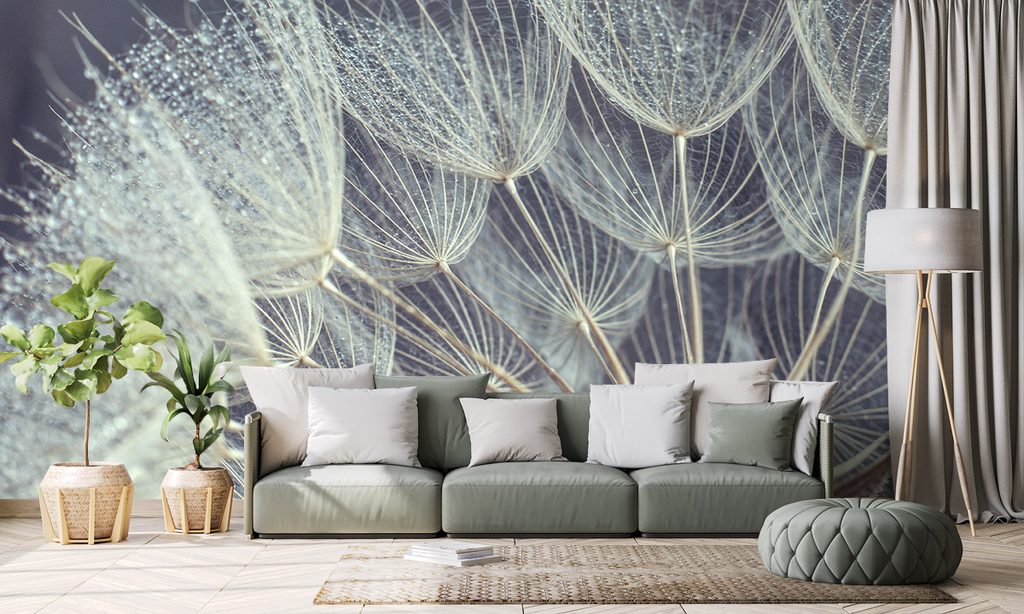 Nádherná samolepiaca fototapeta detail púpavy s kvapkami rosy