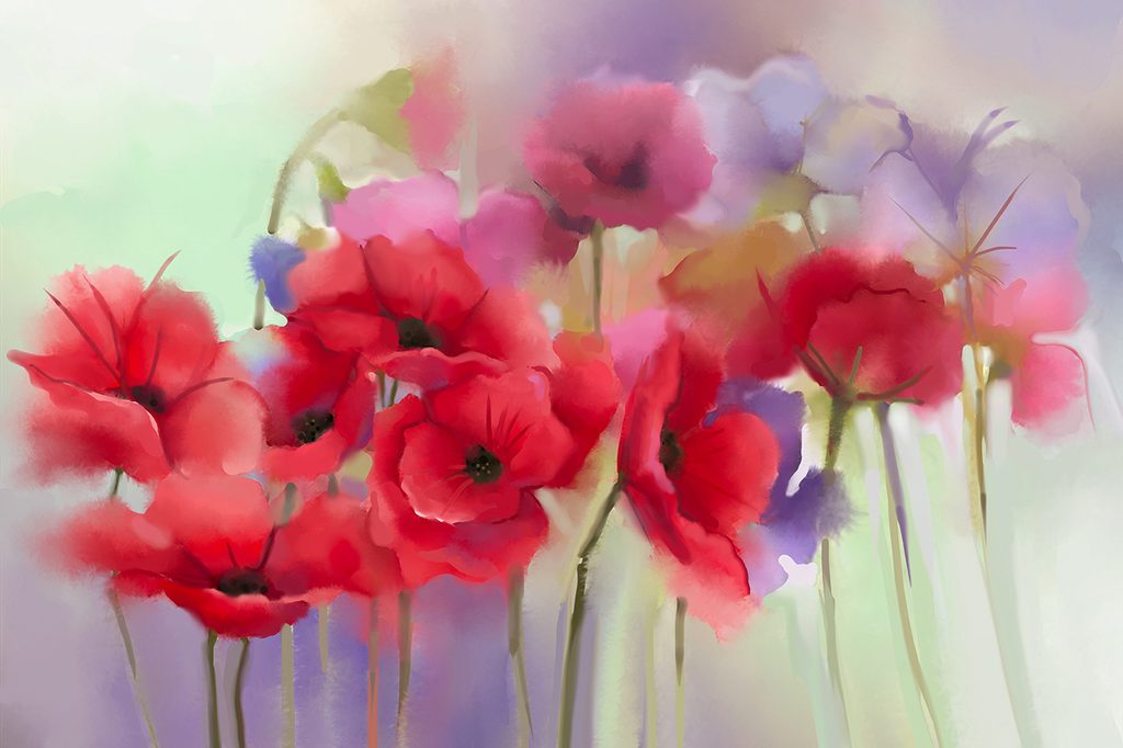 Nádherná samolepiaca tapeta maľba vlčích makov